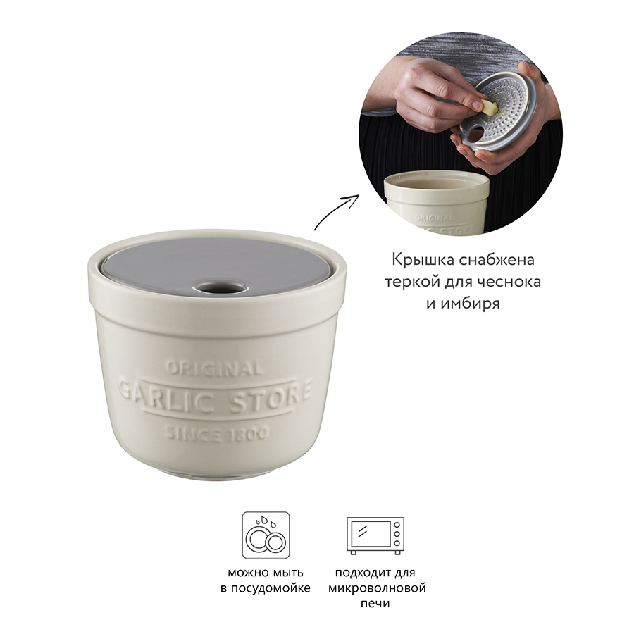 Емкость для хранения чеснока с теркой Innovative Kitchen – удобный и практичный кухонный аксессуар от марки Mason Cash. Изделие выполнено из экологически чистой и прочной керамики. Поверхность емкости покрыта белой глазурью, устойчивой к образованию трещин и сколов. Для сохранения свежести и качества продукта в изделии предусмотрены вентиляционные отверстия. Крышка аксессуара снабжена теркой для чеснока и имбиря. Емкость легко поддается уходу и занимает мало места на домашней кухне.