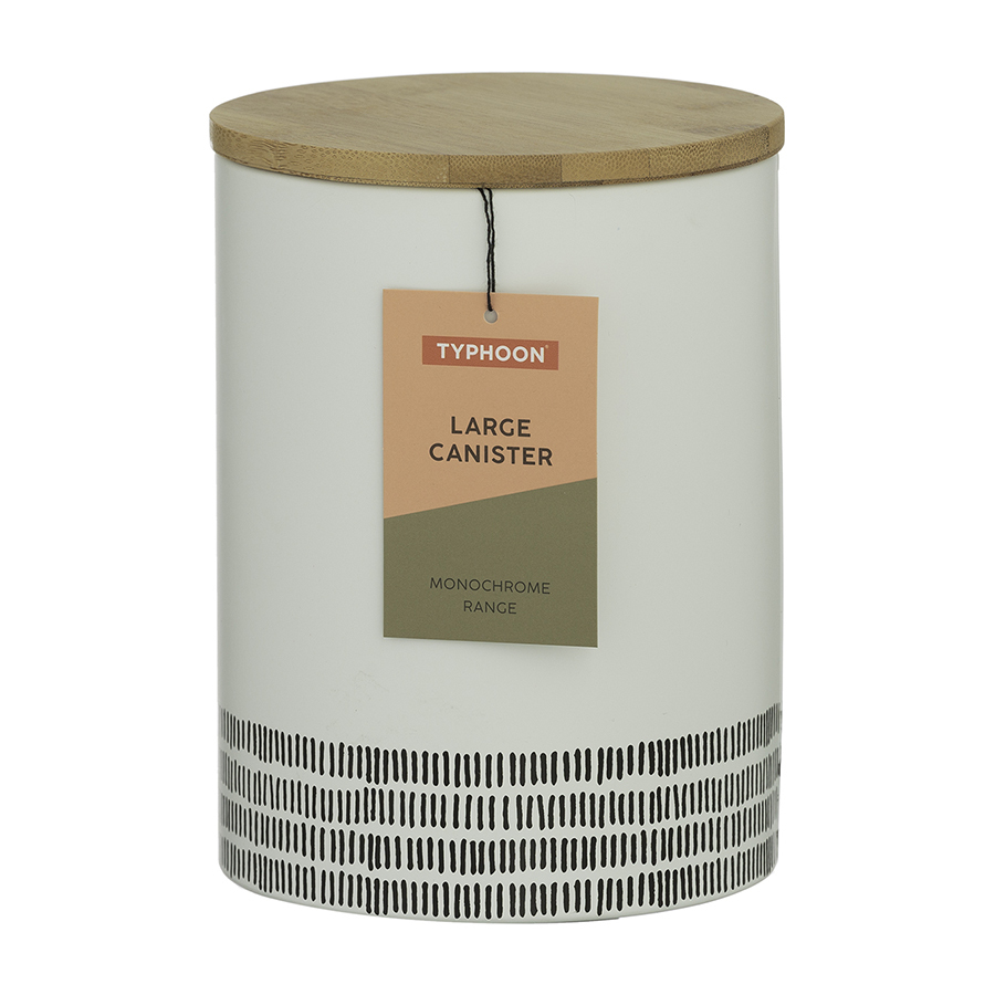 Большая емкость для хранения Monochrome поможет организовать рабочее пространство на вашей кухне. Эргономичный контейнер из эмалированной стали подходит для чая, круп, пасты и всех видов кондитерских изделий. Бамбуковая крышка с воздухопроницаемым уплотнителем из силикона продлевает свежесть продуктов и защищает их от воздействия влаги.