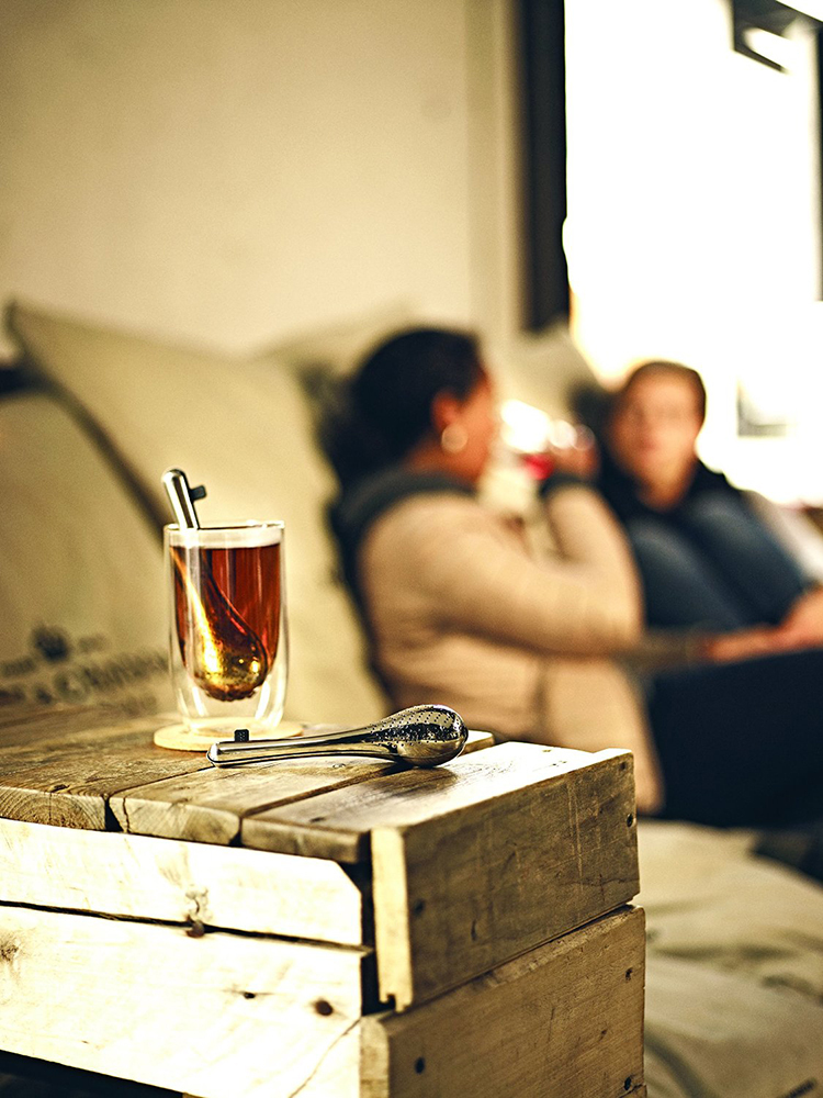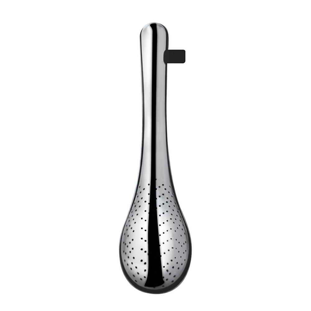 Стильная заварочная емкость, по форме напоминающая чайную ложку. Функциональный и лаконичный дизайн, в котором нет ничего лишнего. Емкость состоит из двух частей, которые держатся на магнитах: непосредственно фильтра и сплошной ложки. Чтобы заварить чай, разъедините емкость и наполните ложку необходимым количеством чая. Прикрепите сверху фильтр и поместите в горячую воду. Как только напиток заварится, вытащите емкость и положите на стол сплошной стороной вниз - такое положение гарантирует, что ни одна капля чая не прольется на поверхность. Материал - нержавеющая сталь, пластик без содержания бисфенола-А, магниты и силикон. Можно мыть в посудомоечной машине.