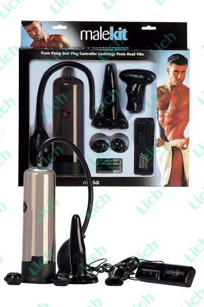 Этот набор не просто доставит вам наслаждение, но и поможет выглядеть в глазах партнерши ненасытным опытным мачо. В набор входит помпа для усиления эрекции и удлинения члена, два эрекционных колечка с шипами, насадка с вибропулькой для стимуляции мошонки, а также анальная пробка с секретом. Достаточно вставить её в анус и запустить вибрацию с выносного пульта управления, чтобы вас накрыло блаженство. Длина колбы 19 см, диаметр 5 см. Длина анальной пробки 11 см, диаметр 2 см.