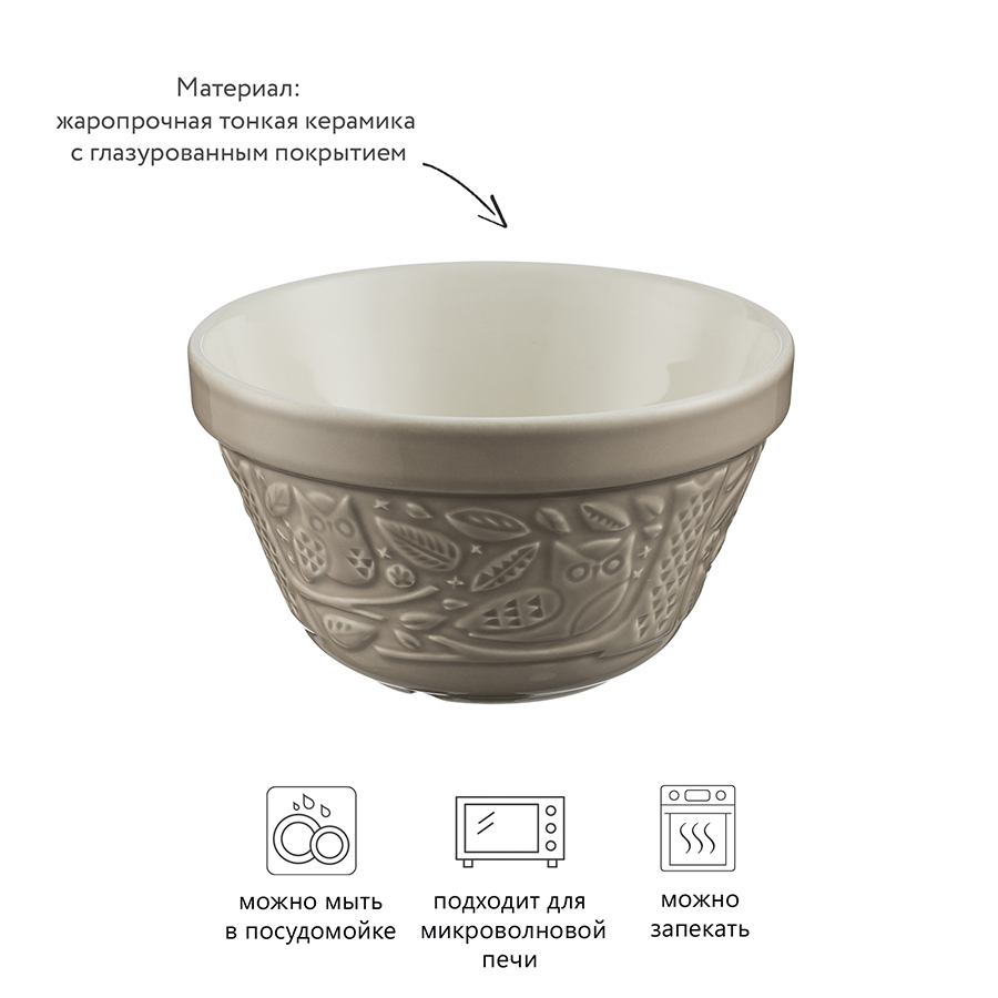 Серая форма для пудинга In the Forest займет достойное место на домашней или профессиональной кухне. При создании посуды этой коллекции дизайнеры вдохновились народными сказками XIX века. Поверхность блюда украшает тиснение в виде лесного пейзажа.