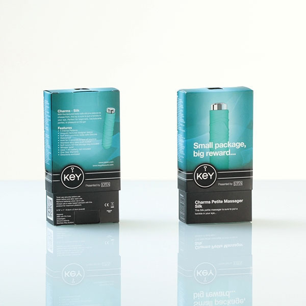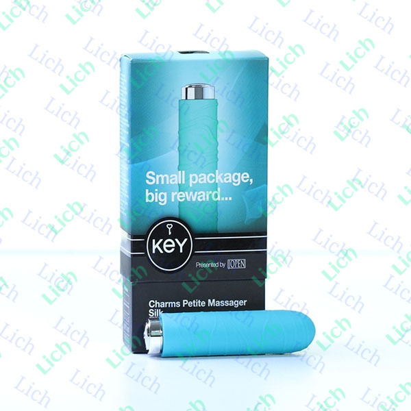 Голубой минивибромассажер с ребристой поверхностью Charms Key