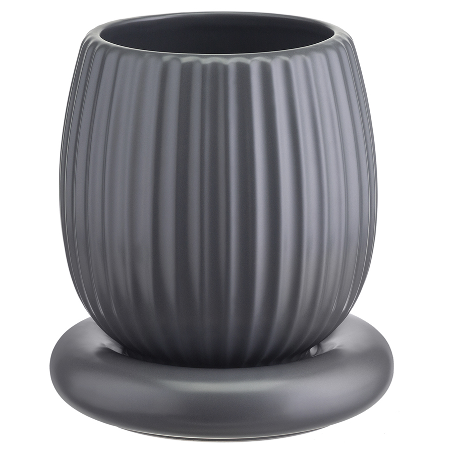 Горшок цветочный серого цвета из коллекции Edge хорошо подойдет для небольших комнатных растений и поможет привнести природу в дом. Изделие простой округлой формы с фактурными гранями отлично сочетается со свечами и вазами из этой же коллекции, позволяя создавать интересные интерьерные композиции. Горшок выполнен из доломита, устойчивого к сколам, легкого и экологически чистого материала, снаружи и внутри покрыт матовой глазурью, имеет дренажное отверстие в нижней части.