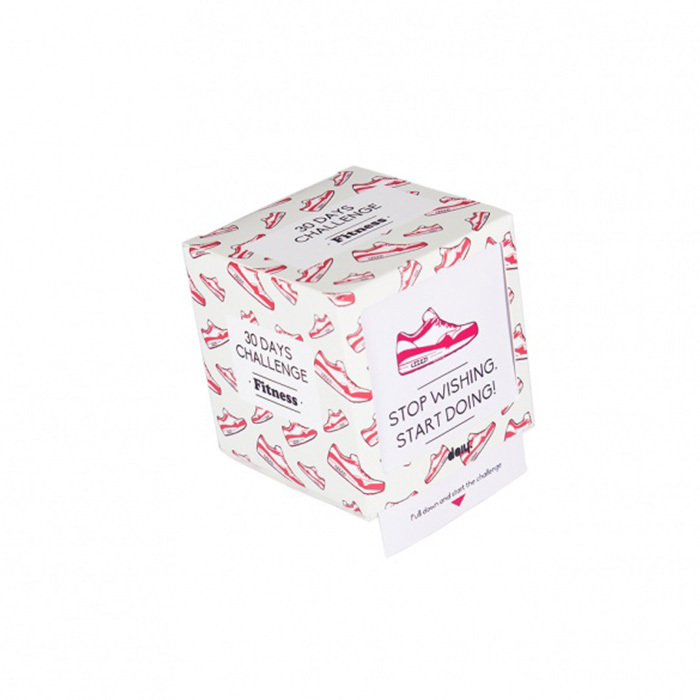 Идея для тех, кто следит за фигурой. Компактная упаковка содержит 30 карточек, на которых на английском языке прописаны различные упражнения, которые рекомендуется выполнить в течение дня. Это может быть, например, комплекс из нескольких десятков отжиманий и прыжков или просто рекомендация выйти на получасовую пробежку. Карточки достаются из коробки по одной. Согласно правилам игры, доставать следующую карточку можно только при условии, если вы выполнили задание с предыдущей. Когда карточки закончатся, игра считается пройденной. Выполняя задания, вы получаете не только полезные рекомендации по улучшению физической формы, но и дополнительную мотивацию!