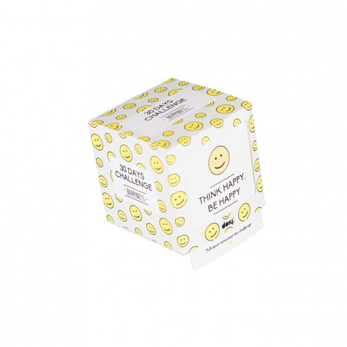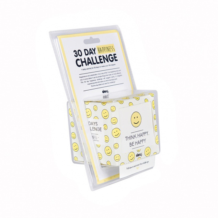 Необычная игра, цель которой — приучить к позитивному образу мыслей и к наслаждению каждым моментом. Компактная упаковка содержит 30 карточек, на которых на английском языке прописаны рекомендации на каждый день. Согласно правилам игры, доставать следующую карточку можно только при условии, если вы выполнили задание с предыдущей. Когда карточки закончатся, игра считается пройденной.