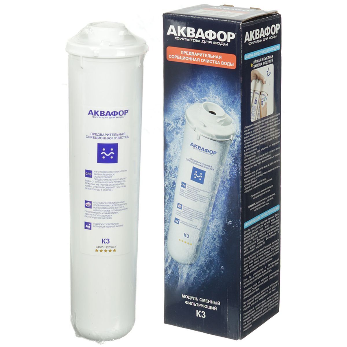 Сменный модуль для предварительной очистки воды. Используется в системах Аквафор с отдельным краном. Удаляет вредные примеси, в том числе взвеси, хлор, тяжелые металлы и органические вещества.