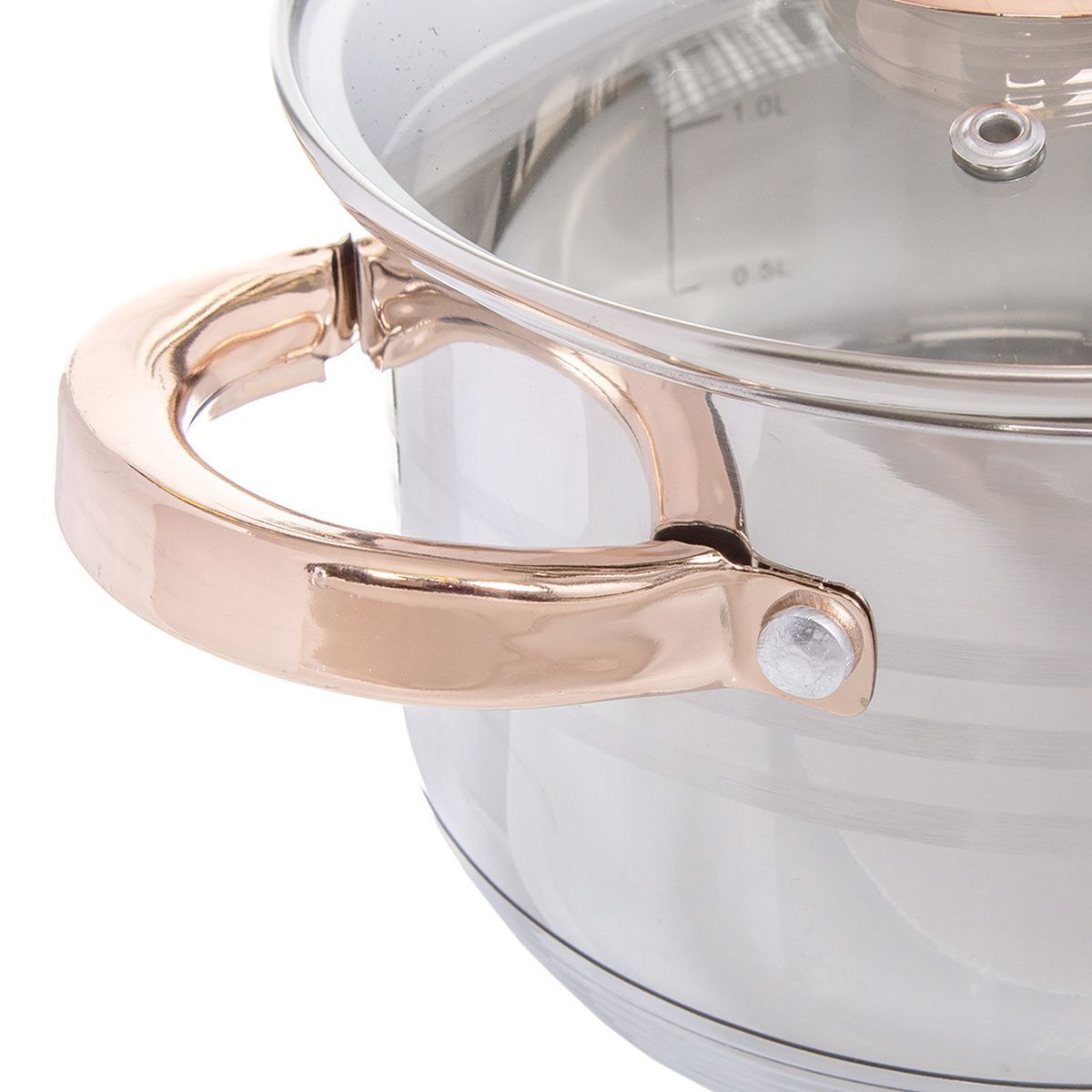 Кастрюля изготовлена из высококачественной нержавеющей стали.
