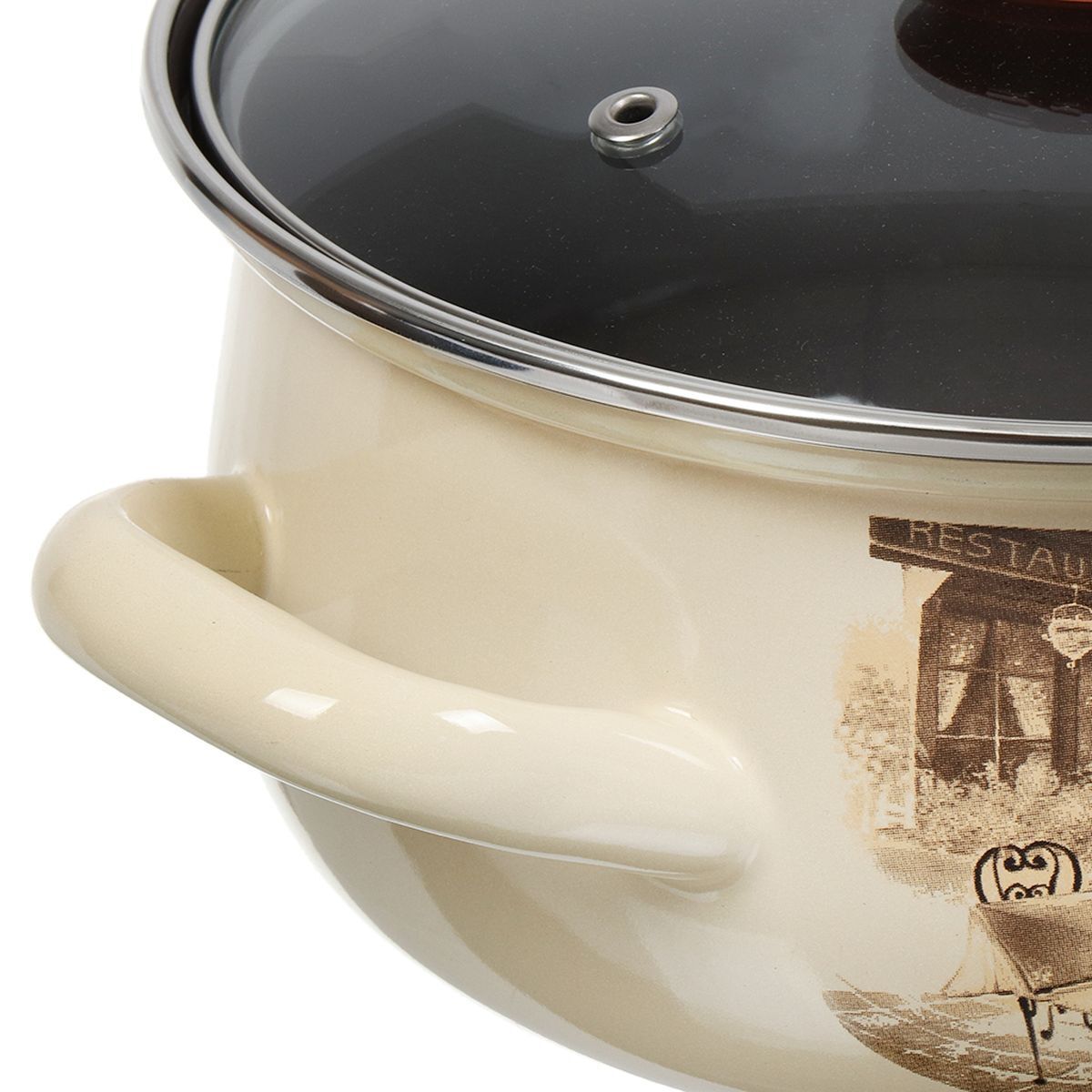 Кастрюля сталь, эмал, 1.5 л, с крыш, крышка стекло, с декором, кругл, Керчь, Сомелье, 61904-082/4.02