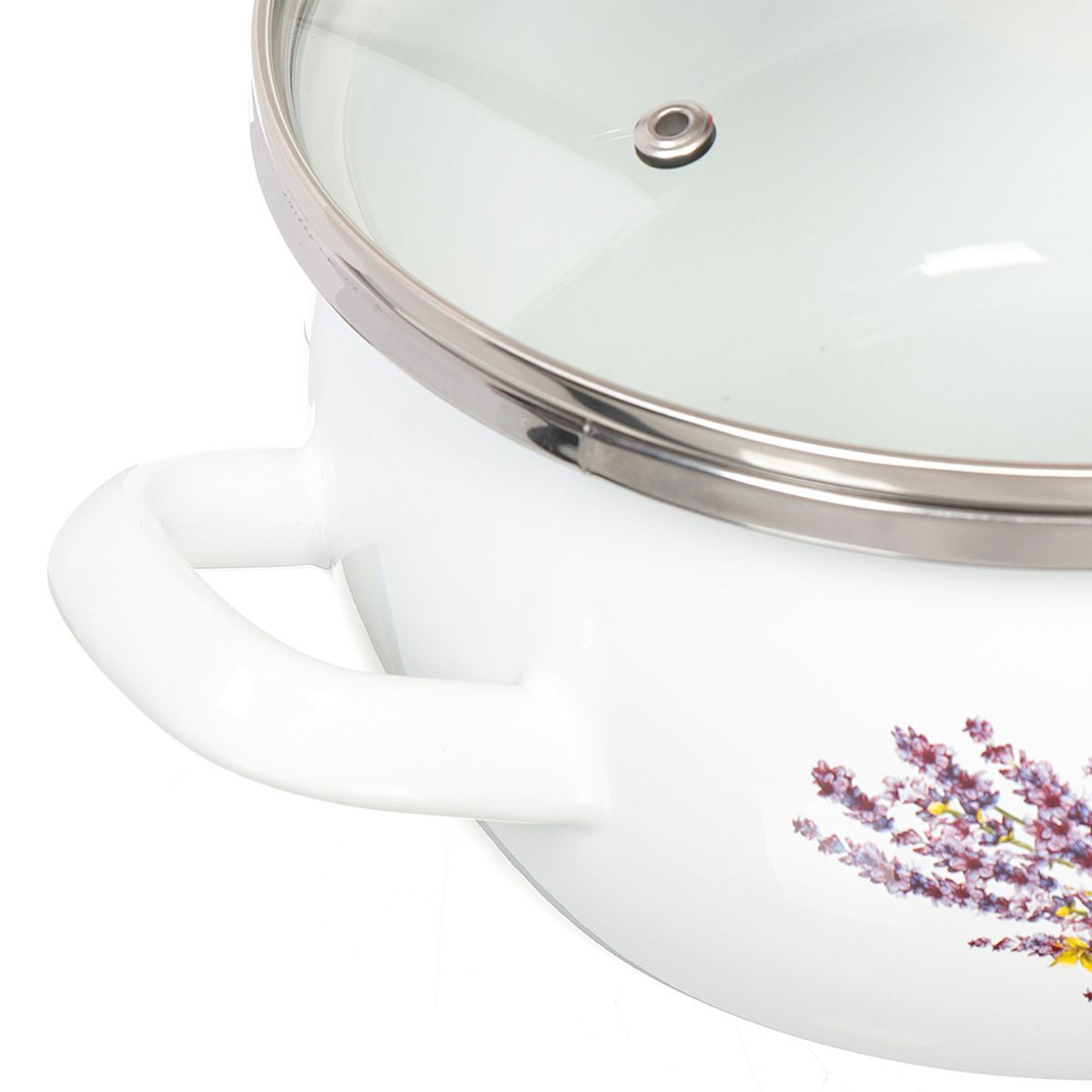 Каждое изделие комплектуется нержавеющим ободком на крышке и кастрюле, а сама крышка изготовлена их жаропрочного стекла.