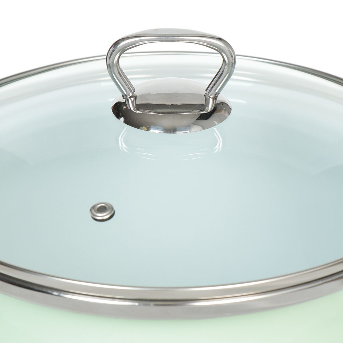 Толщина металла посуды — 0,7 мм, что увеличивает стойкость к деформации, сколам и, как следствие, достигается более долгий срок эксплуатации;