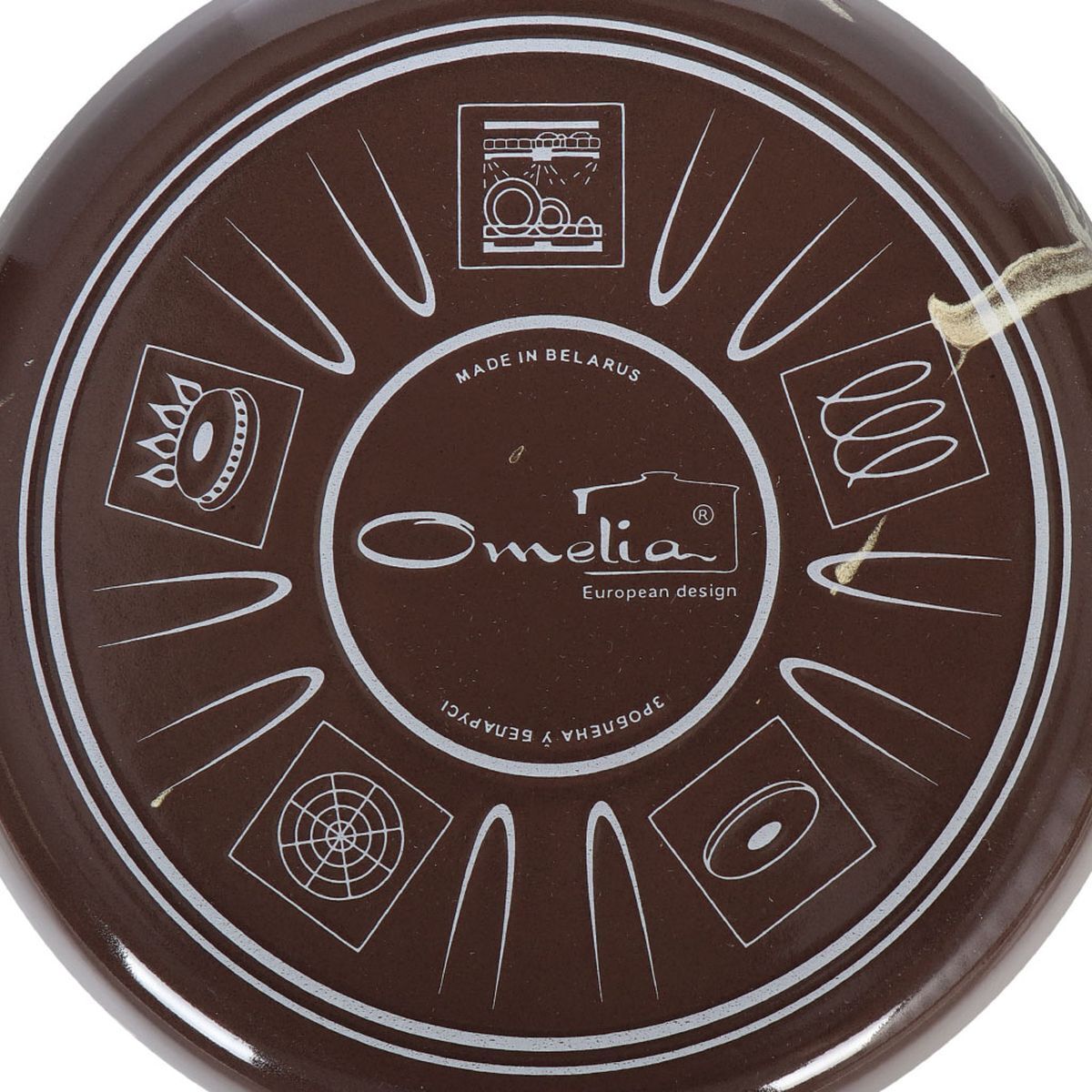 На дне изделий без ободка допускаются «точки» - следы от иголок, на которые изделие ставится и обжигается в печи. На изделиях с ободком таких следов нет, т.к. для обжига они ставятся вверх дном, а борт затем закрывается ободком из нержавеющей стали.