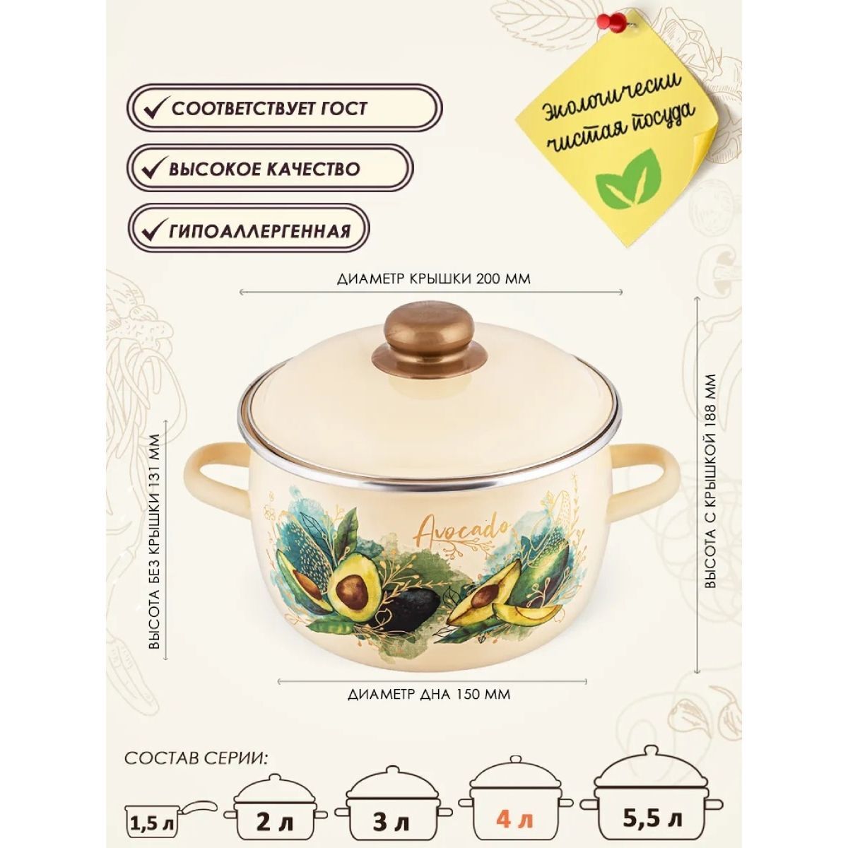«Кастрюля сталь, эмалированное покрытие, 4 л, крышка сталь, Appetite, Avocado, 1MC201P» можно купить мелким, средним и крупным оптом по привлекательным ценам благодаря тому, что мы сотрудничаем с российскими и международными производителями напрямую, без посредников.