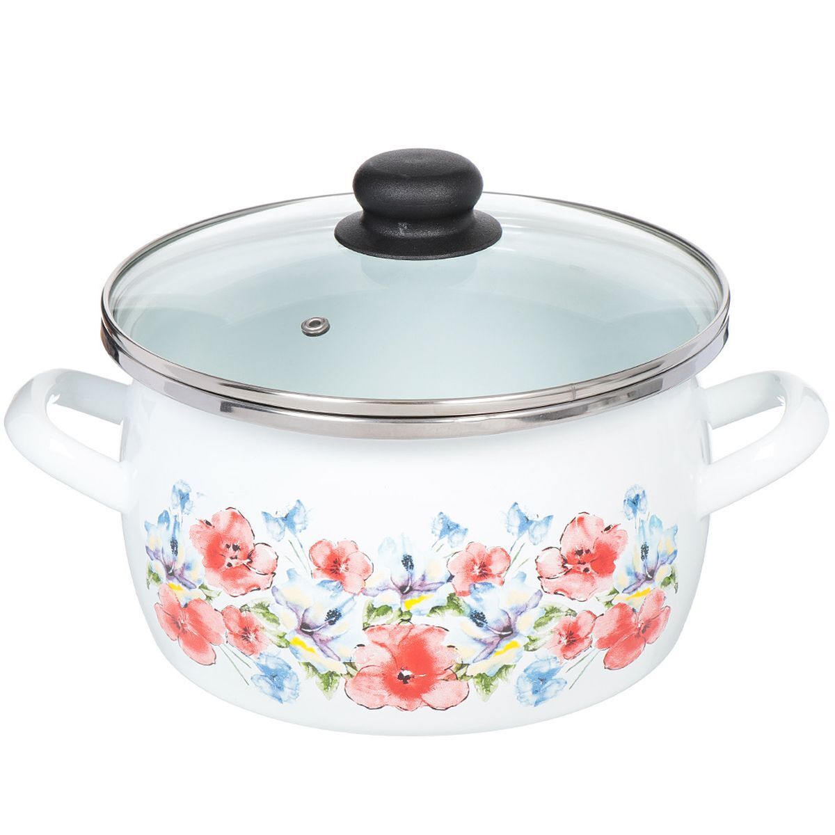 Каждое изделие комплектуется нержавеющим ободком на крышке и кастрюле, а сама крышка изготовлена их жаропрочного стекла.