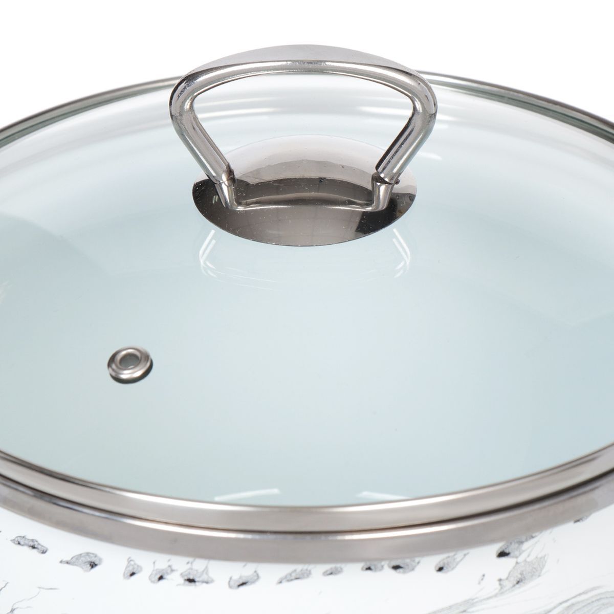 Каждое изделие комплектуется нержавеющим ободком на крышке и кастрюле, а сама крышка изготовлена их жаропрочного стекла.
