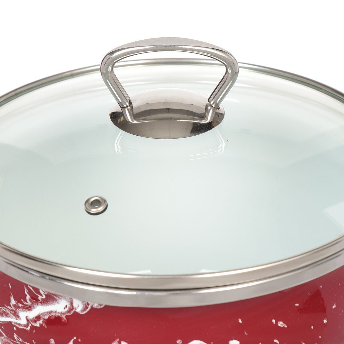 Толщина металла посуды — 0,7 мм, что увеличивает стойкость к деформации, сколам и, как следствие, достигается более долгий срок эксплуатации;