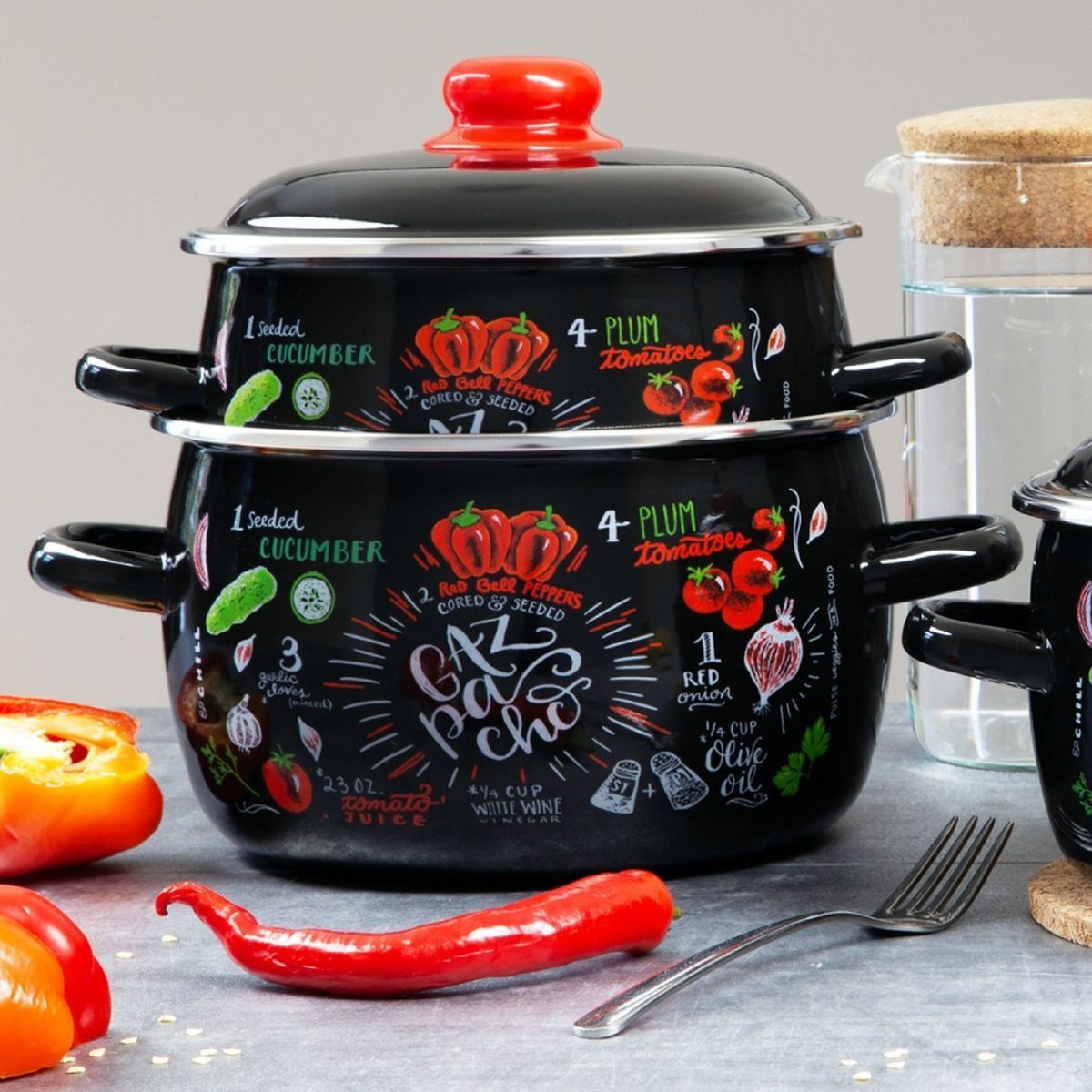 Кастрюля Appetite станет украшением вашей кухни и поможет вам готовить вкусные блюда. Она изготовлена из эмалированной стали, поэтому запах готовой пищи не задерживается на стенках посуды после мытья. Покрытие устойчиво к воздействию щелочей и кислот и не вступает в химические реакции с пищевыми продуктами. Гладкая поверхность препятствует размножению бактерий и значительно превосходит нержавеющую сталь, алюминий и другие материалы по санитарным свойствам и простоте ухода.