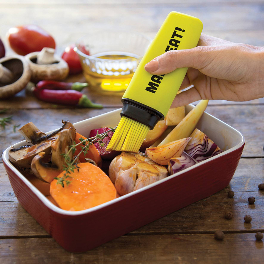 Удобная кондитерская кисть в виде маркера. Предназначена для декорирования кондитерских изделий и прочих блюд. Небольшая помпа впитывает жидкий краситель и позволяет регулировать количество краски. Размеры: 4.5x3x15.5 см.