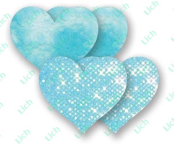 Комплект из 1 пары голубых пэстис-сердечек с блестками и 1 пары голубых пэстис-сердечек с кружевной поверхностью