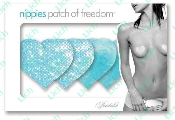 Эти оригинальные пэстис нежно-голубого цвета помогут вам выглядеть сексуально как в спальне, так и за её пределами. Зафиксировав наклейки в форме сердечек на груди, вы не покажете окружающим лишнего, но распалите желание в мужчинах (или в одном, но самом-самом). Блёстки или кружева..? Что бы вы ни выбрали, эффект от вашего появления будет потрясающим! В комплекте: 2 пары пэстис, 2 тестовых мини-пэстис, 4 защитные накладки для сосков.