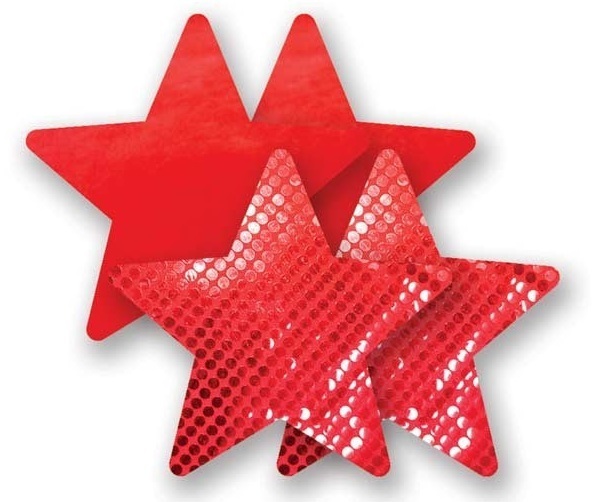Комплект из 1 пары красных пэстис-звездочек с блестками и 1 пары красных пэстис-звездочек с гладкой поверхностью