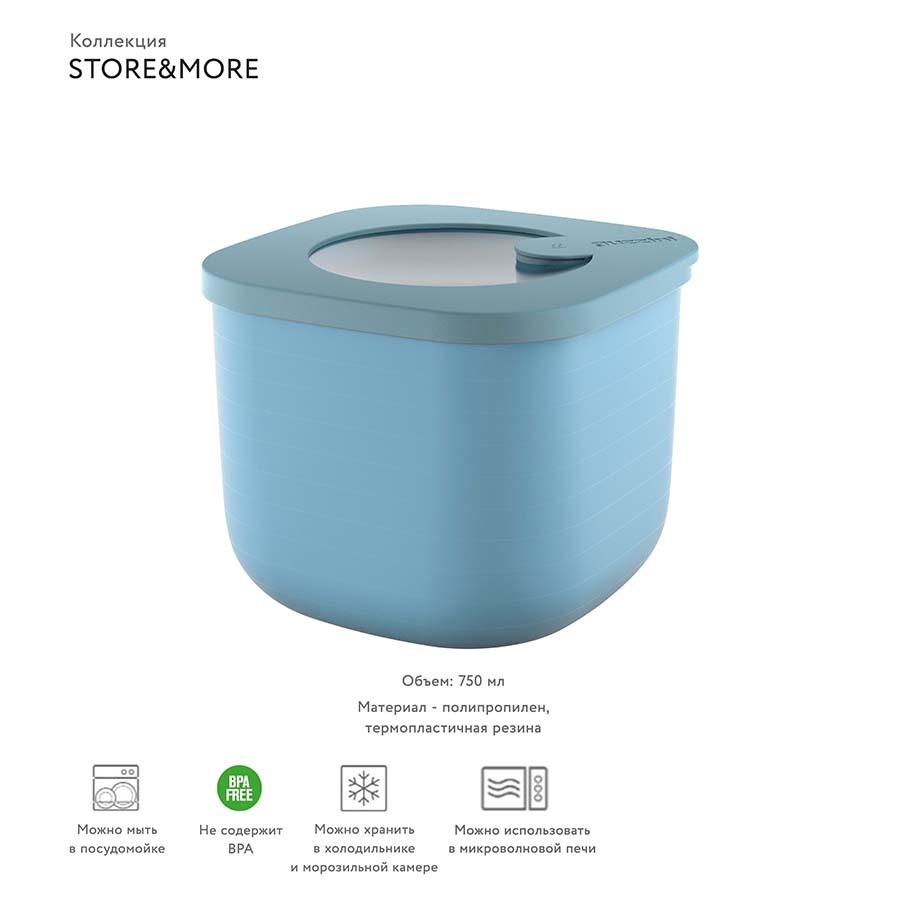 Пищевой контейнер Store&More объемом 750 мл идеально подходит для использования дома и на открытом воздухе. Посуда предназначена для хранения продуктов в холодильнике или морозильной камере, нагрева в микроволновой печи, транспортировки и подачи блюд. Изделие можно взять с собой на дачу, пикник или на работу. Идея создания пищевого контейнера в форме куба с плавными обтекаемыми углами принадлежит дизайнерской студии Spalvieri & Del Ciotto.