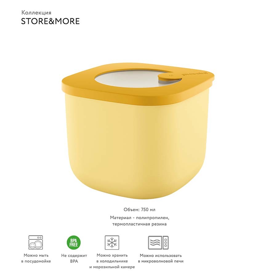 Пищевой контейнер Store&More объемом 750 мл идеально подходит для использования дома и на открытом воздухе. Посуда предназначена для хранения продуктов в холодильнике или морозильной камере, нагрева в микроволновой печи, транспортировки и подачи блюд. Изделие можно взять с собой на дачу, пикник или на работу. Идея создания пищевого контейнера в форме куба с плавными обтекаемыми углами принадлежит дизайнерской студии Spalvieri & Del Ciotto.