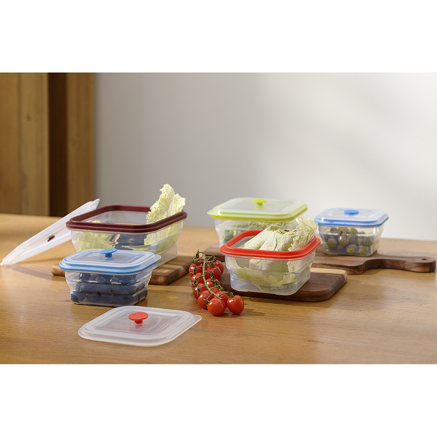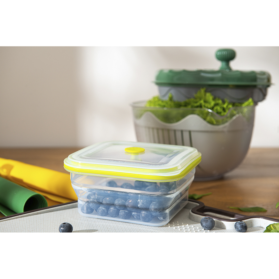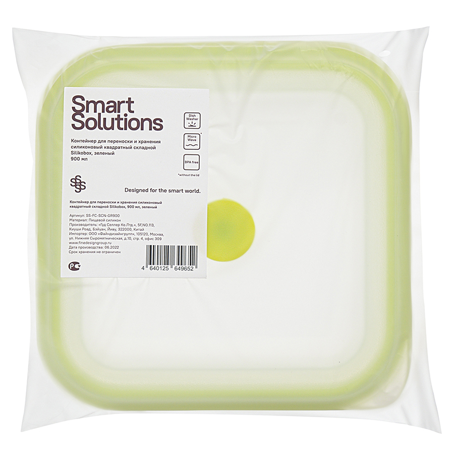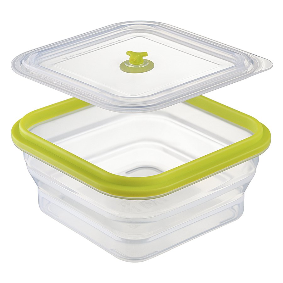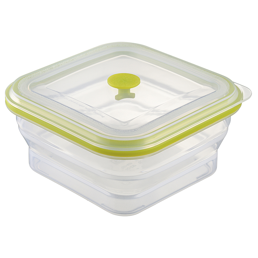 Материал: пищевой силикон. Размеры: 15,5х15,5х7,5 см. Размеры в сложенном виде: 15,5х15,5х3,5 см. Объем: 900 мл. Цвет: зеленый.