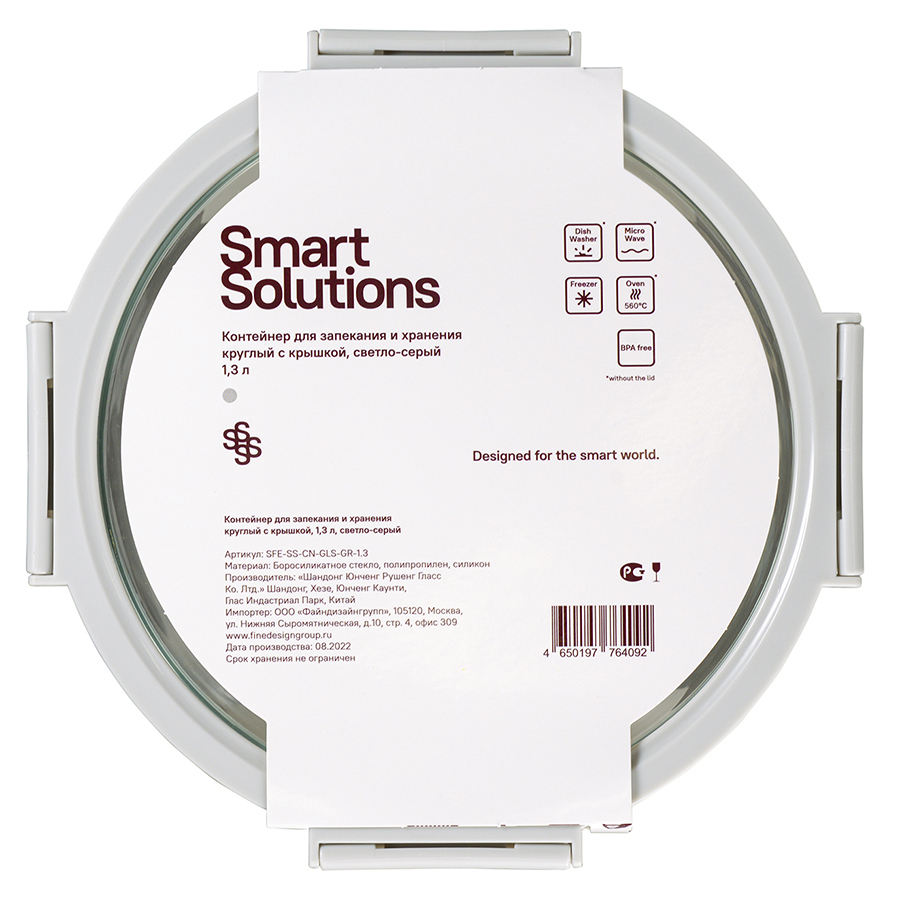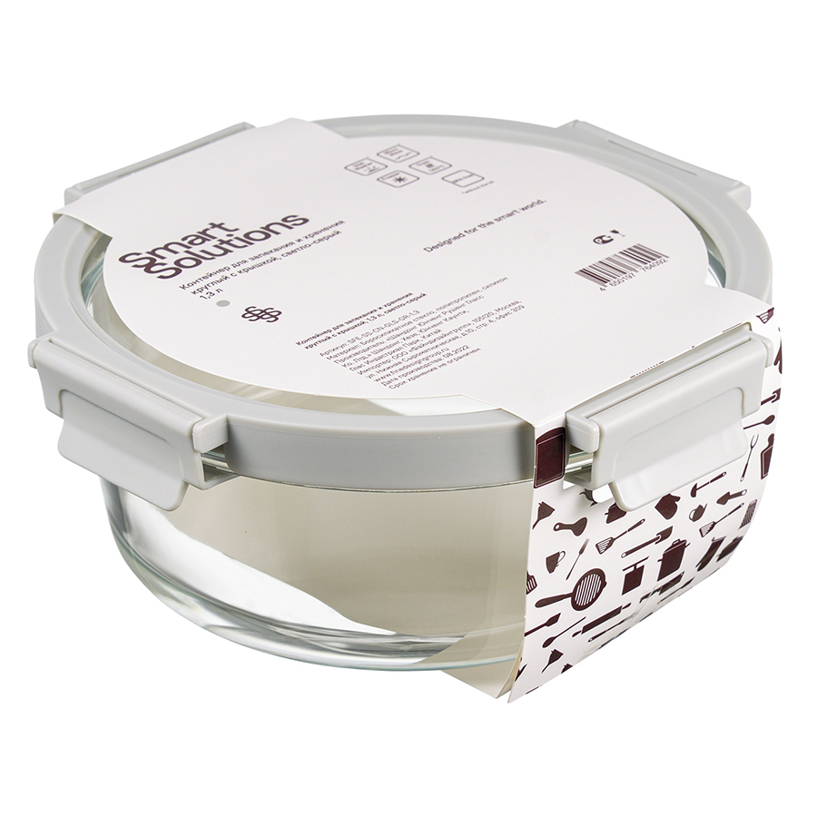 Контейнер круглый от бренда Smart Solution – готовое решение для хранения продуктов и приготовления различных блюд в духовке. Емкость из прочного боросиликатного стекла не боится перепадов температуры, обладает устойчивостью к износу и химическим воздействиям, легко моется. Материал не содержит токсинов и бисфенола-А, не имеет запаха, не меняет вкус еды. Крышка защищает содержимое от заветривания и попадания внутрь посторонних предметов. Наличие специального вентиляционного отверстия позволяет выпустить из контейнера лишний воздух или горячий пар, что повышает герметичность и улучшает условия хранения продуктов.