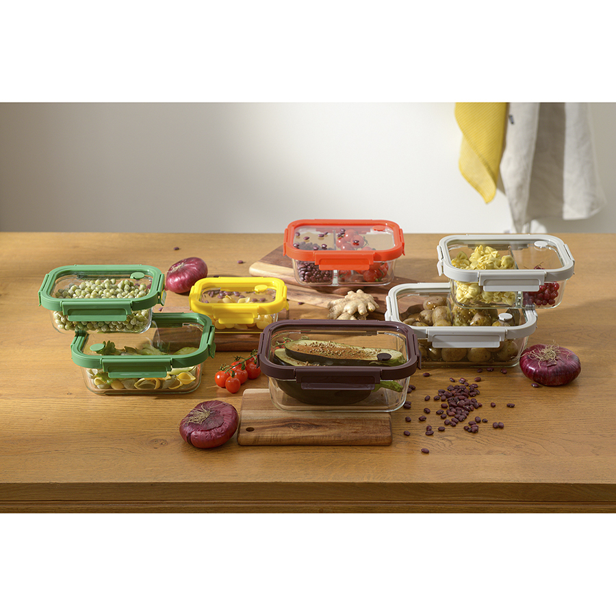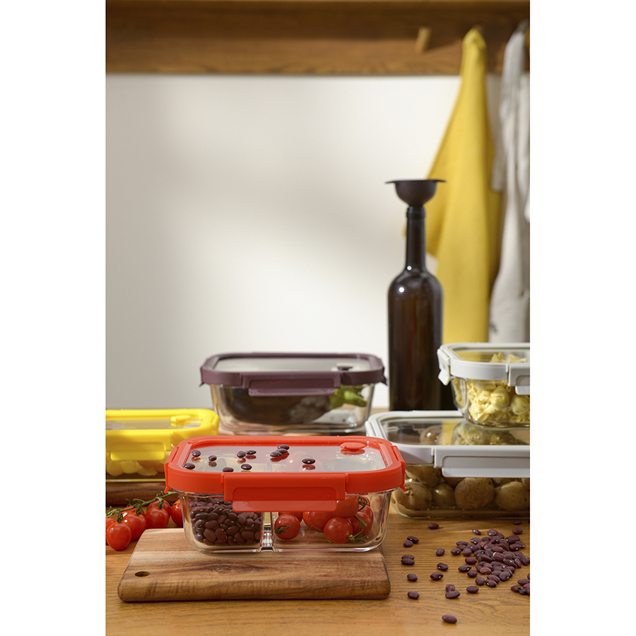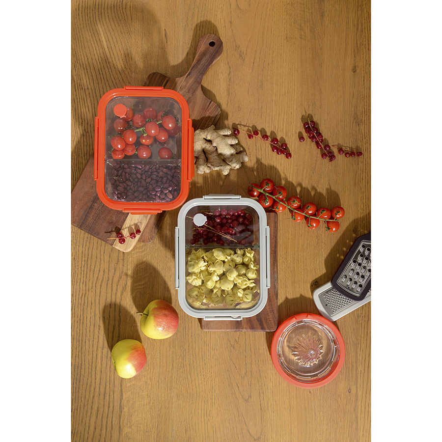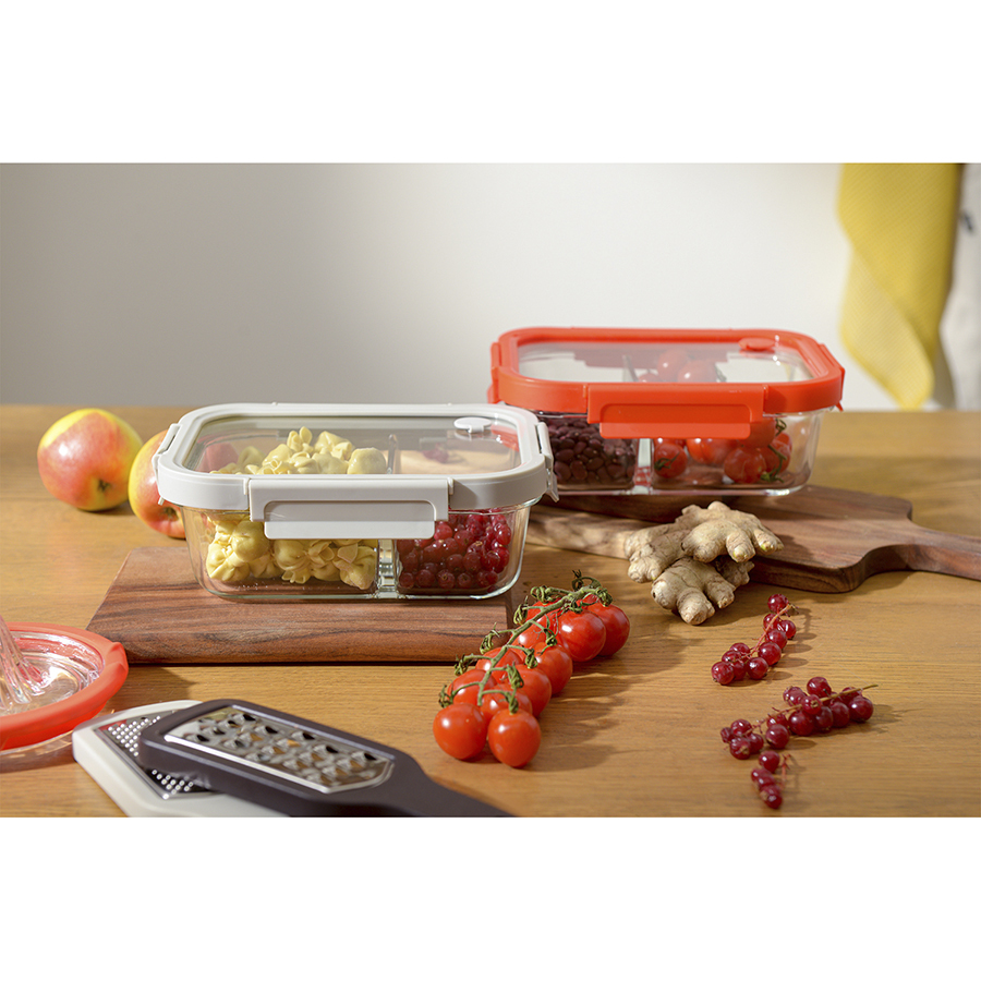 Контейнер прямоугольный от бренда Smart Solution – готовое решение для хранения продуктов и приготовления различных блюд в духовке. Емкость из прочного боросиликатного стекла не боится перепадов температуры, обладает устойчивостью к износу и химическим воздействиям, легко моется. Материал не содержит токсинов и бисфенола-А, не имеет запаха, не меняет вкус еды. Зонированное внутреннее пространство дает возможность одновременно брать с собой несколько блюд. Крышка защищает содержимое от заветривания и попадания внутрь посторонних предметов. Наличие специального вентиляционного отверстия позволяет выпустить из контейнера лишний воздух или горячий пар, что повышает герметичность и улучшает условия хранения продуктов.
