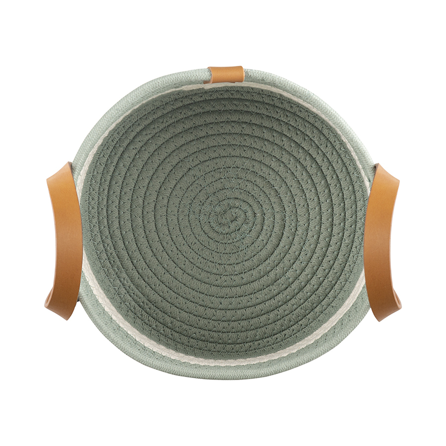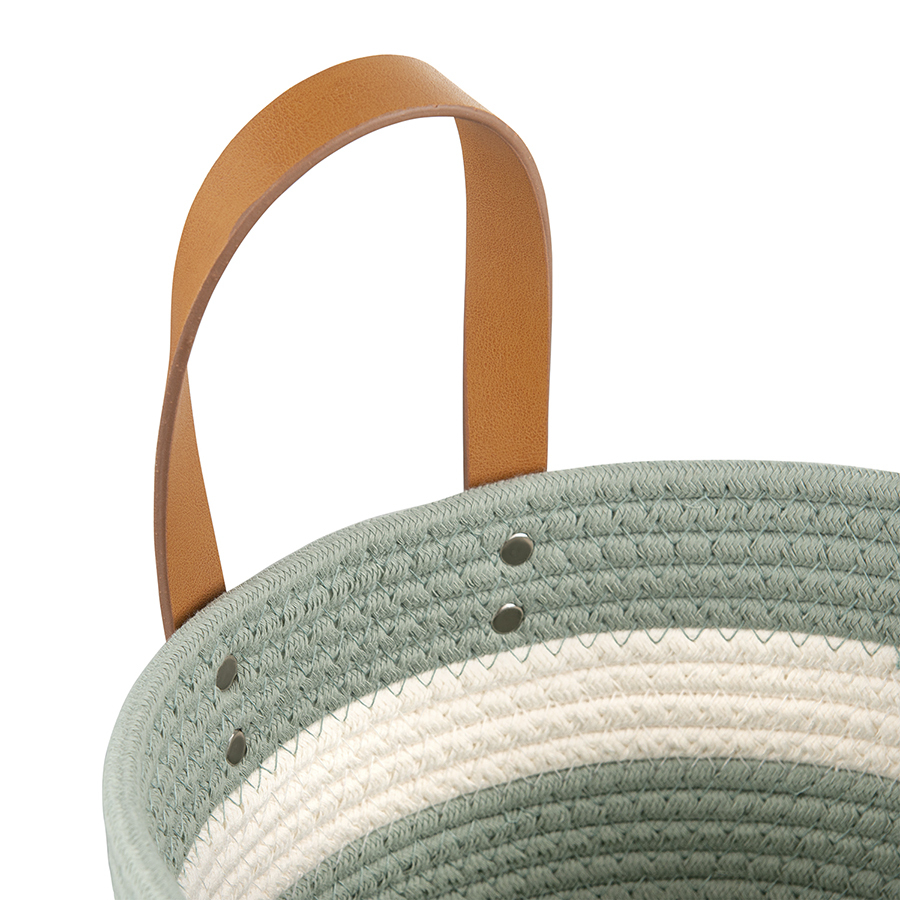 Корзина Helly – прекрасный вариант для хранения различных предметов. Благодаря стильному дизайну такой контейнер отлично вписывается в современный интерьер гостиной, спальни или прихожей. Изделие выполнено из хлопковой нити с добавлением полиэстера, что гарантирует ему прочность, устойчивость к истиранию и привлекательный вид на протяжении всего срока службы. Изюминку корзине придают плетеный корпус и ручки из полиуретана, которые также обеспечивают удобную переноску.