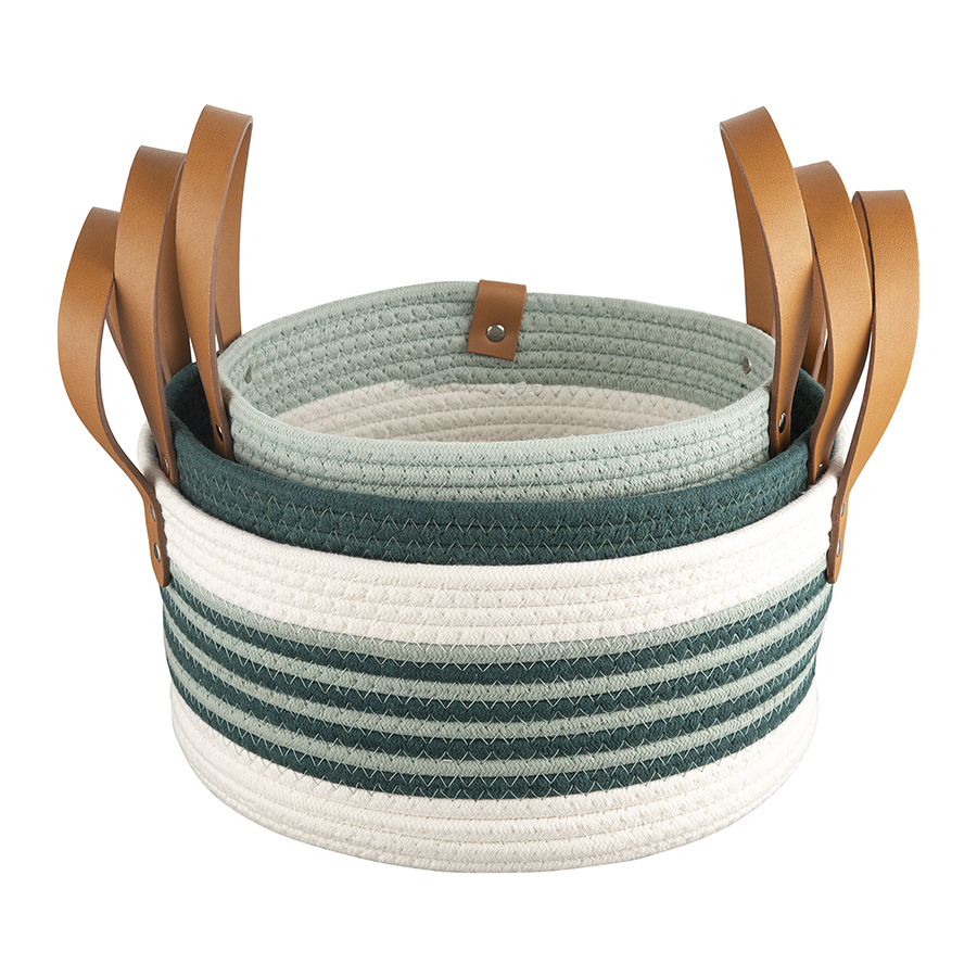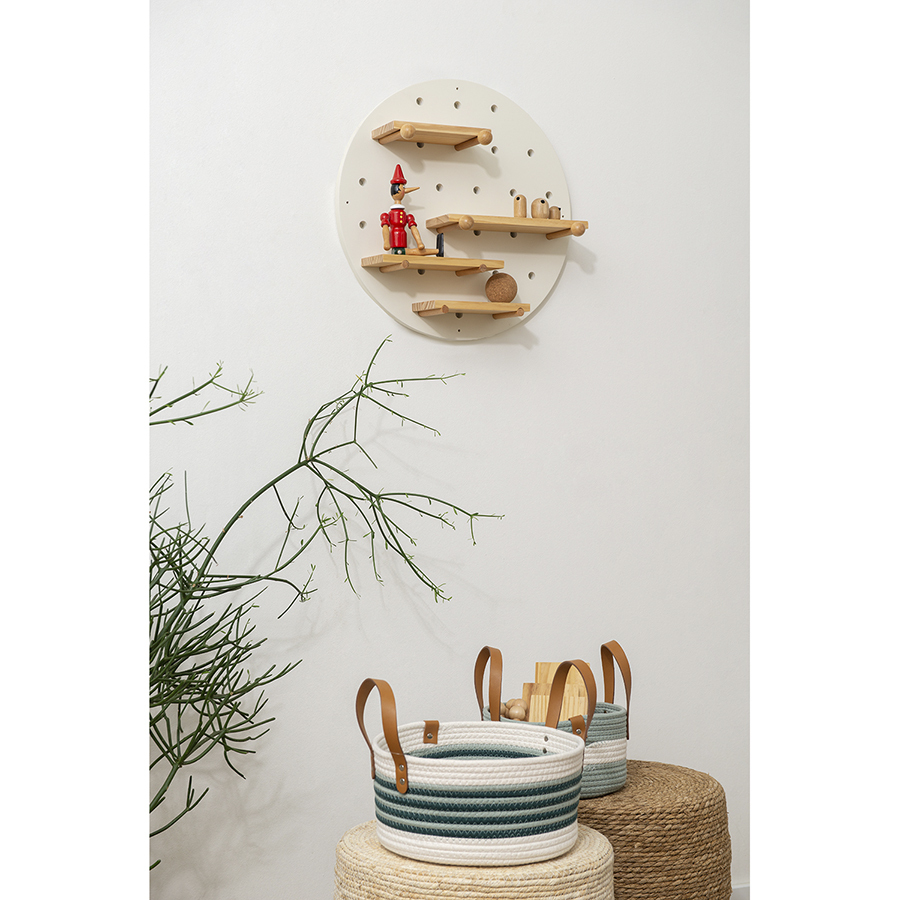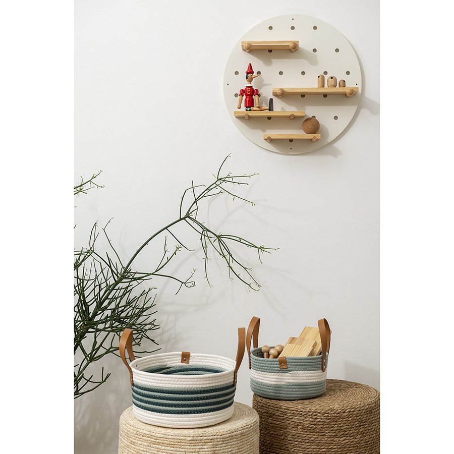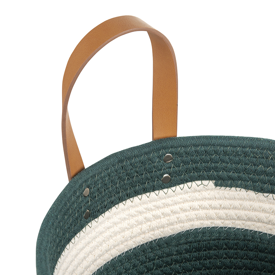 Корзина Helly – прекрасный вариант для хранения различных предметов. Благодаря стильному дизайну такой контейнер отлично вписывается в современный интерьер гостиной, спальни или прихожей. Изделие выполнено из хлопковой нити с добавлением полиэстера, что гарантирует ему прочность, устойчивость к истиранию и привлекательный вид на протяжении всего срока службы. Изюминку корзине придают плетеный корпус и ручки из полиуретана, которые также обеспечивают удобную переноску.