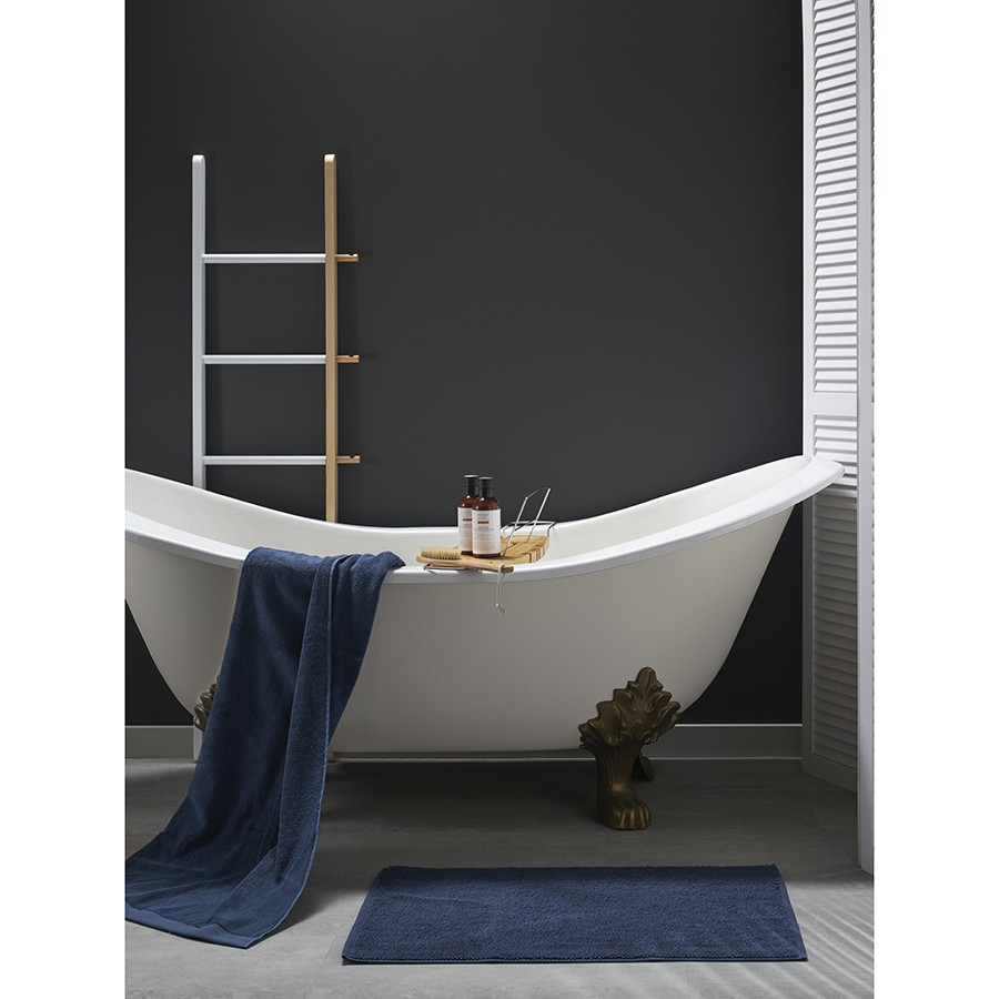 Коврик для ванной ворсовый из чесаного хлопка темно-синего цвета из коллекции Essential подарит ощущение нежности и комфорта до и после водных процедур и понравится ценителям натуральных материалов. Изделие выполнено из лучших сортов длинноволокнистого хлопка с тщательным прочесыванием, что значительно улучшает его качество. Коврик быстро впитывает влагу, оставляя приятное ощущение свежести и чистоты. Благодаря своему качеству изделие обладает повышенной износостойкостью: хорошо держит форму и сохраняет впитывающие свойства на протяжении долгого времени.