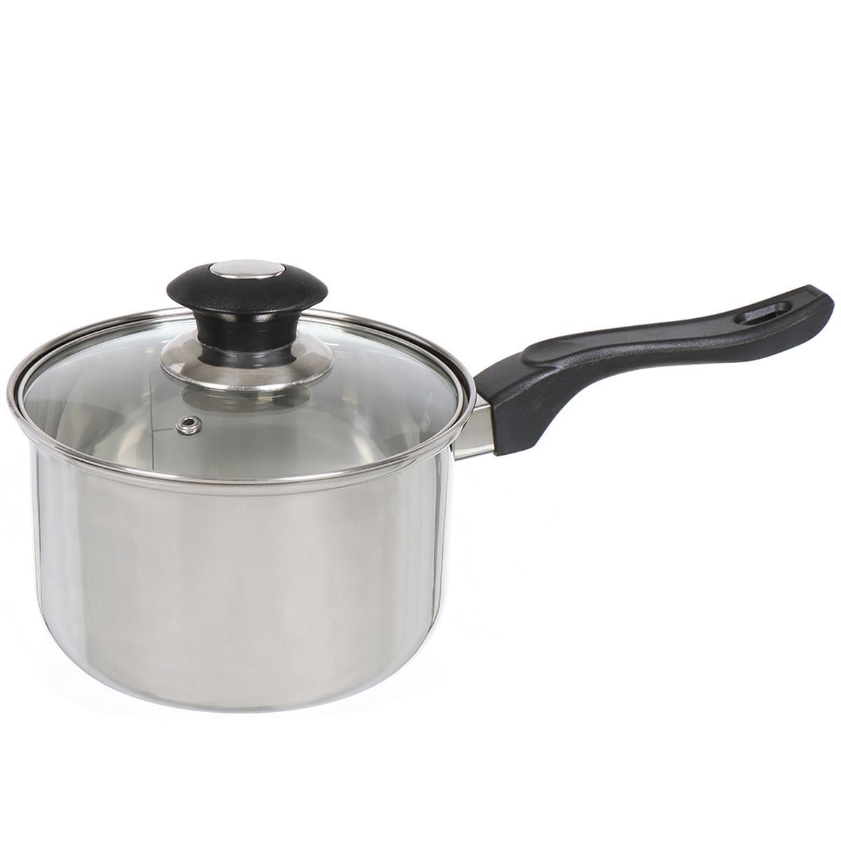Ковшик выполнен из высококачественной нержавеющей стали. Крышка из прозрачного стекла позволяет контролировать процесс приготовления пищи. Ручка с бакелитовым покрытием удобна, прочна и не нагревается при использовании посуды.