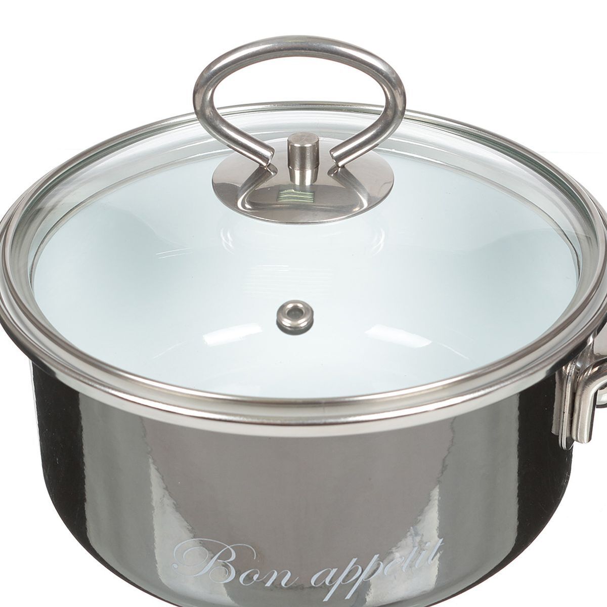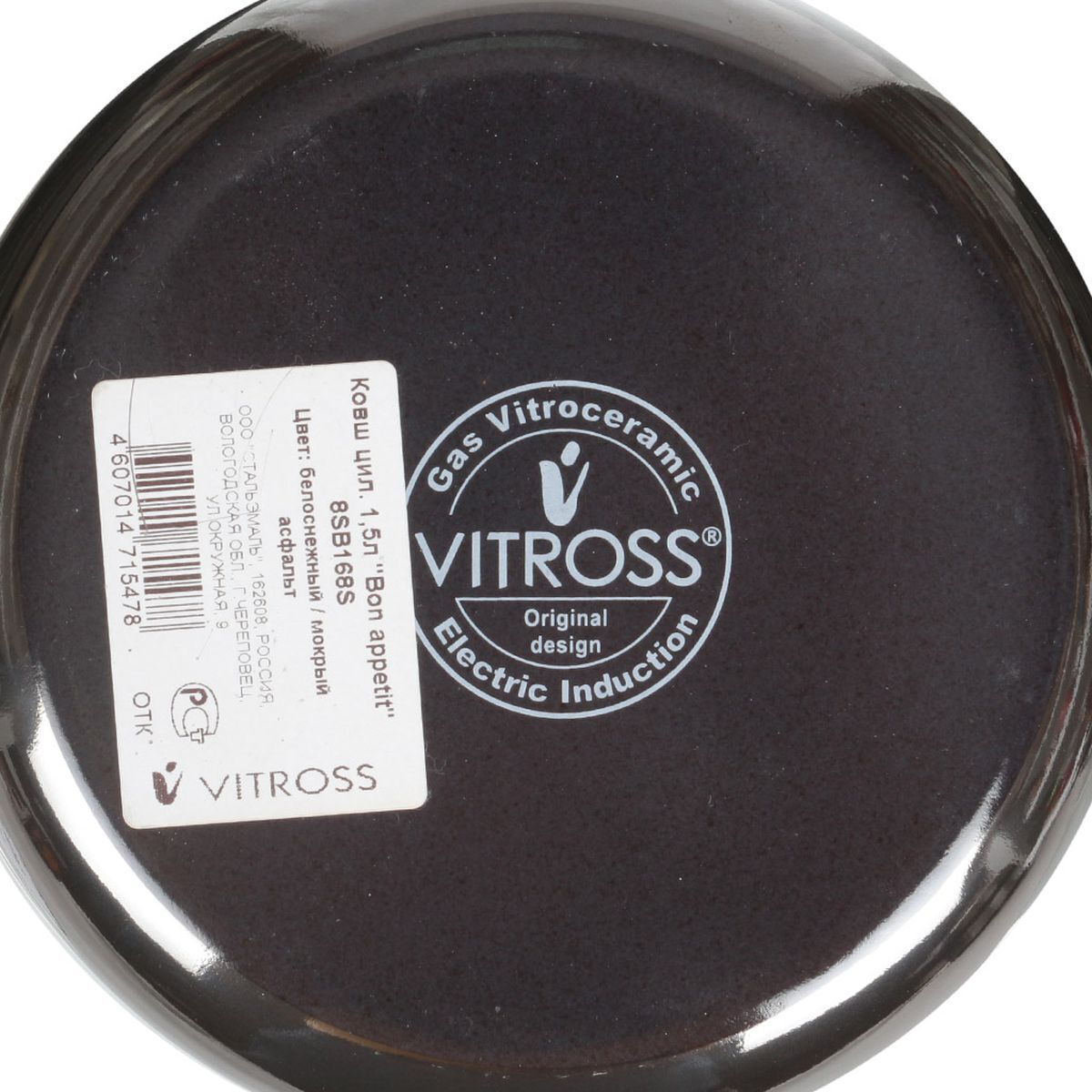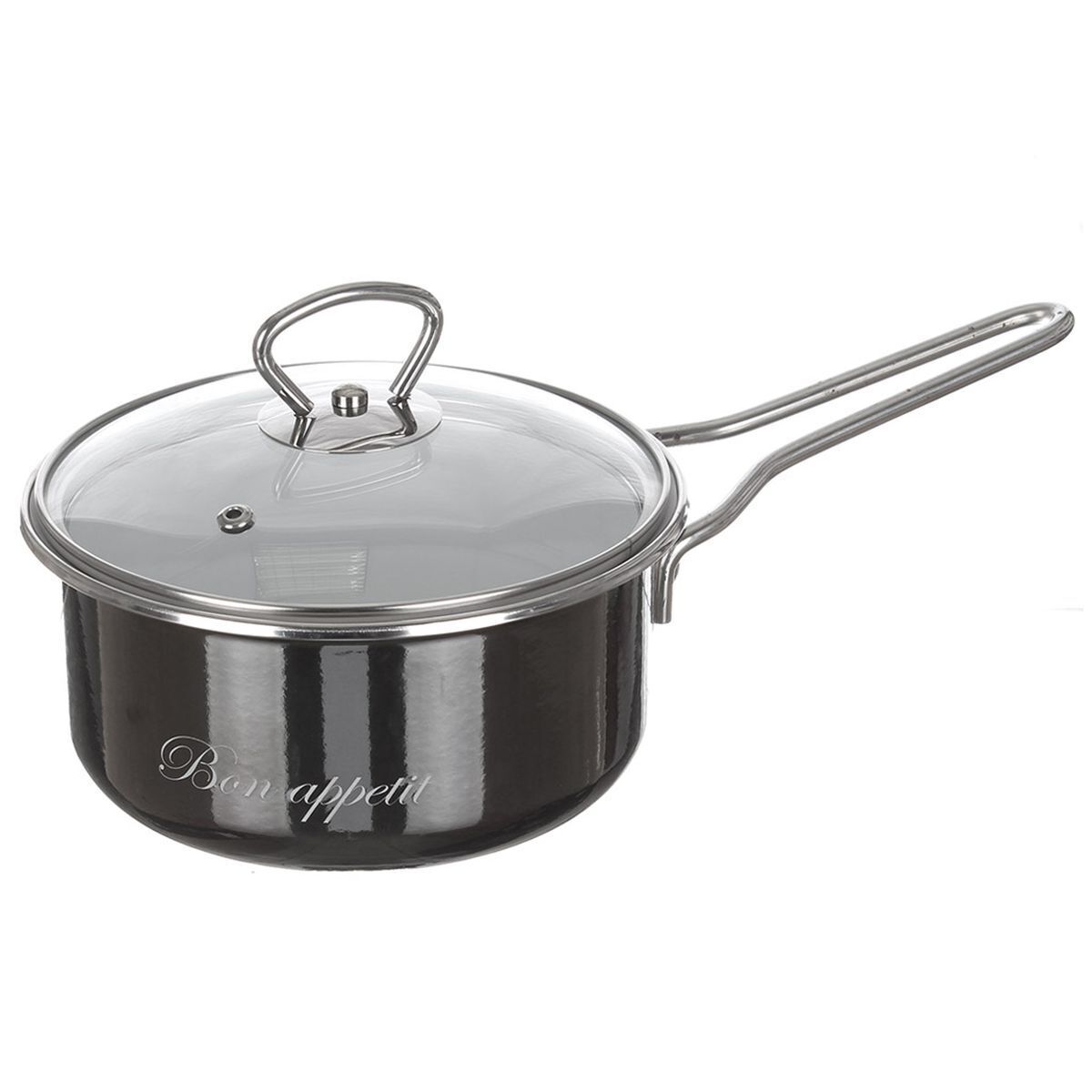 Ковш сталь, эмал, 1.5 л, крышка стекло, сталь ручка, Vitross, Bon Appetit, 8SВ168S, мокр асф