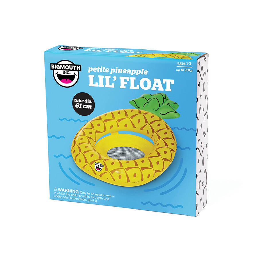 Что может быть лучше спелого жёлтого ананаса жарким летом? Плескаться в прохладной воде с кругом в виде большого ананаса! Такой круг станет отличным подарком любому малышу. Рады представить новую коллекцию летних бестселлеров от легендарного бренда BigMouth! Яркие цвета и стильные дизайны, а также прочные и безопасные материалы отличают продукцию BigMouth от других производителей. С аксессуарами из новой коллекции — каждый может стать звездой пляжа или вечеринки у бассейна! Изделия выполнены из особо прочного винила и выдерживают до 20 кг веса! Благодаря улучшенной технике печати они стойко переносят длительное воздействие ультрафиолета и не выцветают. При производстве компания уделяет пристальное внимание качеству и безопасности плавательных аксессуаров, поэтому каждый продукт проходит тщательные проверки и испытания на прочность. Детские круги подойдут даже для самых маленьких – они оснащены специальной сеточкой внизу, чтобы малыш мог с комфортом плавать.