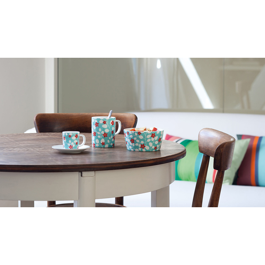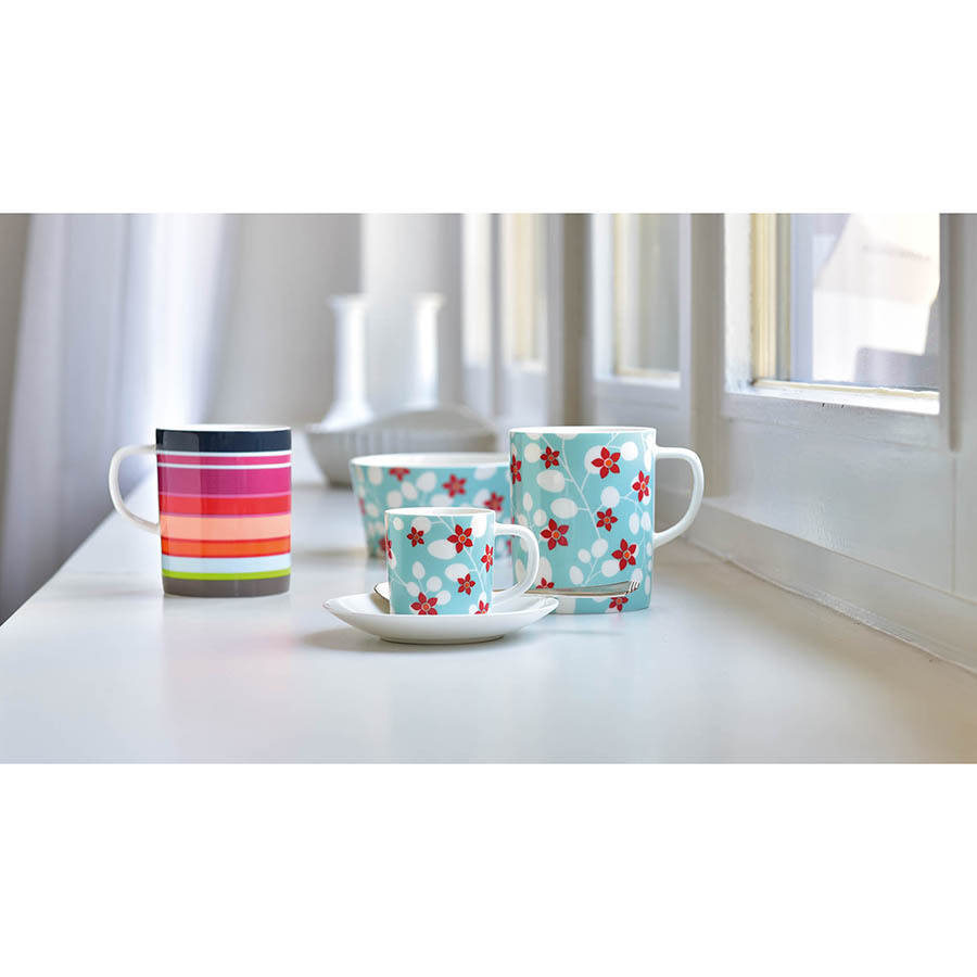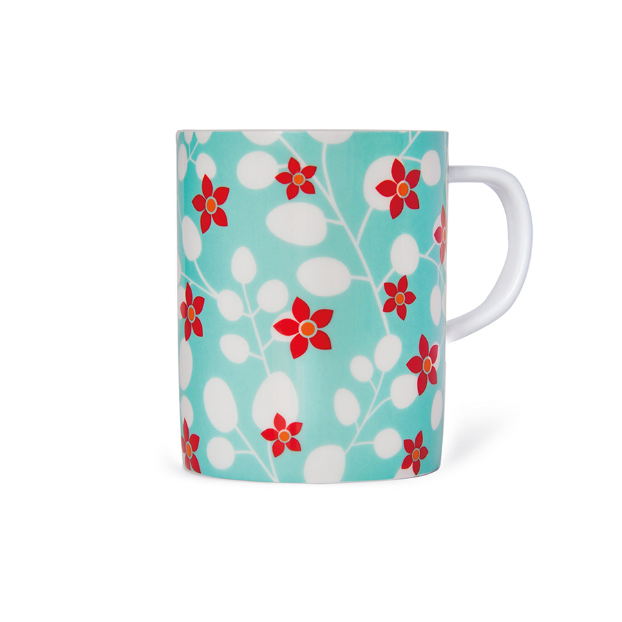 Кружка из качественного фарфора с цветочным принтом станет ярким акцентом на вашем столе.