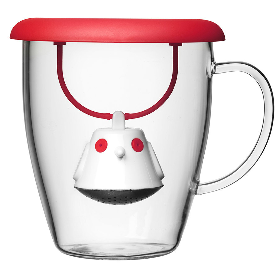 Кружка с необычной емкостью для заваривания чая в виде птички. Снабжена крышкой, с помощью которой можно быстро и безопасно приготовить любимый напиток. Одним легким движением откройте стальной фильтр, наполните его необходимым количеством чайных листьев, так же легко закройте и поместите в горячую воду. Крышка не только поможет чаю завариться быстрее, но и убережет ваши пальцы от возможного нагревания. Когда чай готов, просто поднимите крышку, переверните и положите на стол. Вся жидкость с заварника будет стекать в нее, как в поднос - очень удобно. Объем кружки - 400 мл. Материал кружки - жароустойчивое боросиликатное стекло. Материал емкости - нержавеющая сталь и пластик без содержания бисфенола-А. Можно мыть в посудомоечной машине.
