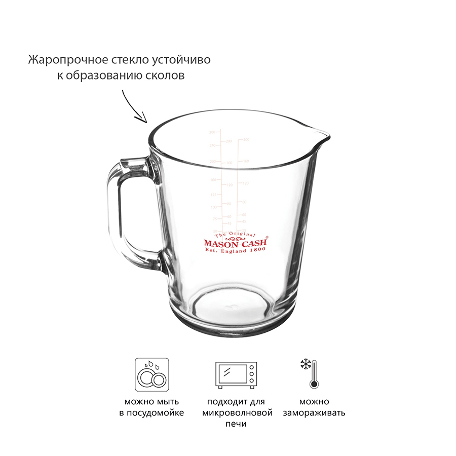 Изделие дополнено яркой мерной шкалой в унциях и миллилитрах. Для производства посуды мастера используют жаропрочное стекло, устойчивое к образованию сколов и воздействию высоких температур. Удобная ручка и изогнутый носик позволяют легко выливать жидкости.