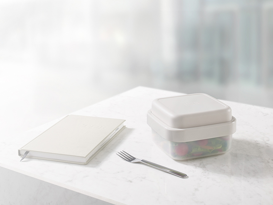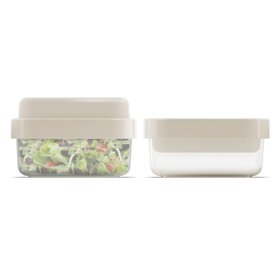 Функциональный контейнер для салатов, который поможет хранить хрупкие салатные листья отдельно от тяжелых или жидких ингредиентов . Состоит из вместительного основного контейнера для сухих составляющих салата, небольшого верхнего отделения для жидких продуктов или снеков, капсулы для соусов, силиконовой крышки и блокирующего кольца. После приема пищи верхнее отделение компактно вкладывается внутрь основного, экономя место в сумке.