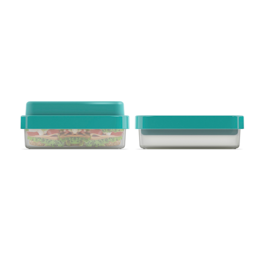 Максимально практичный ланч-бокс состоит из вместительного основного контейнера для сэндвичей и вторых блюд, верхнего отделения для снеков и силиконовой крышки с блокирующим кольцом, которое помогает сохранить свежесть продуктов. Когда контейнер пуст, верхняя часть компактно вкладывается в основную, благодаря чему ланч-бокс очень удобен для переноски.