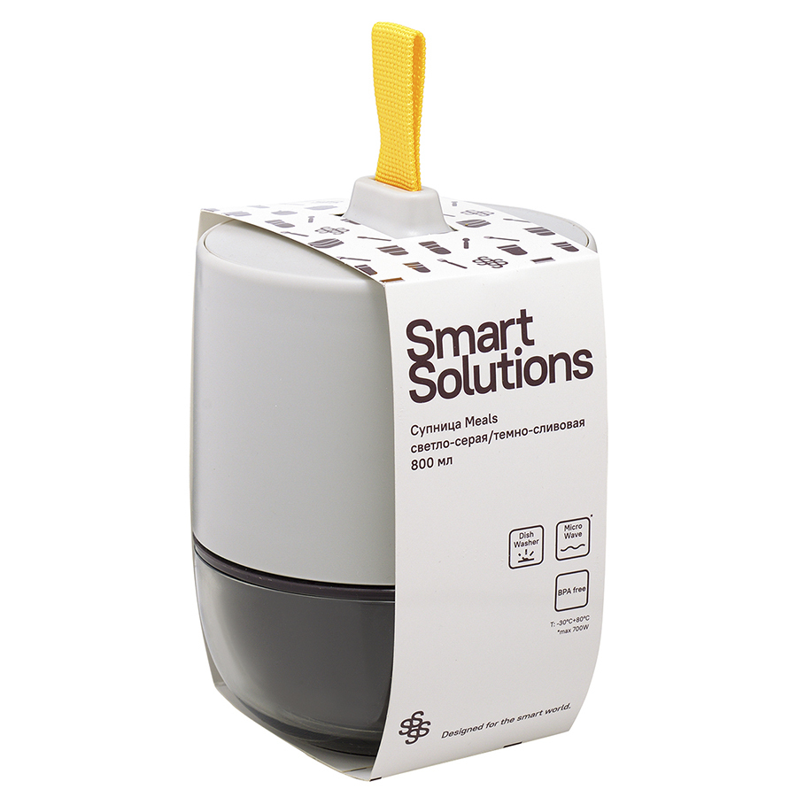 Ланч-бокс Meals от бренда Smart Solutions представляет собой удобный и практичный контейнер для еды с собой. Изделие выполнено из устойчивых к износу и безопасных для здоровья материалов, таких как АБС-пластик и полипропилен. В составе отсутствует вредный бисфенол-А. Конструкция ланч-бокса состоит из двух частей, надежно соединенных между собой. Верхний контейнер идеально подходит для салатов и вторых блюд. Нижний поделен на два отсека, которые можно использовать под фрукты, мюсли и снеки. Специальный ободок из силикона обеспечивает плотное прилегание крышки и защиту от протекания. Однако не рекомендуется переворачивать или трясти контейнер. Благодаря термостойким свойствам емкости можно греть в СВЧ и хранить в холодильнике. Ланч-бокс легко разбирается на составляющие части для тщательной очистки. Перед применением рекомендуем промыть контейнер в горячей воде. Стрелка на крышке указывает направление закрывания контейнера.