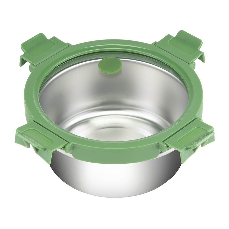 Ланч-бокс из нержавеющей стали – стильная, практичная и надежная посуда для хранения и транспортировки еды. Изделие из нержавеющей стали типа 18/10 не боится коррозии, не впитывает запахи и загрязнения, долго сохраняет привлекательный вид. Крышка из прочного боросиликатного стекла легко выдерживает перепады температуры, имеет специальные фиксаторы, которые помогают избежать протечек. Наличие вентиляционного отверстия позволяет выпустить из контейнера лишний воздух или горячий пар, что повышает герметичность и улучшает условия хранения продуктов. Благодаря компактным размерам емкость не занимает много места в сумке. Ланч-бокс можно смело брать с собой на работу, в поездку или путешествие.