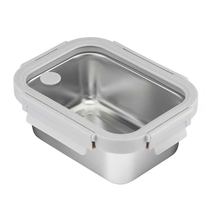 Ланч-бокс из нержавеющей стали – стильная, практичная и надежная посуда для хранения и транспортировки еды. Изделие из нержавеющей стали типа 18/10 не боится коррозии, не впитывает запахи и загрязнения, долго сохраняет привлекательный вид. Крышка из прочного боросиликатного стекла легко выдерживает перепады температуры, имеет специальные фиксаторы, которые помогают избежать протечек. Наличие вентиляционного отверстия позволяет выпустить из контейнера лишний воздух или горячий пар, что повышает герметичность и улучшает условия хранения продуктов. Благодаря компактным размерам емкость не занимает много места в сумке. Ланч-бокс можно смело брать с собой на работу, в поездку или путешествие.