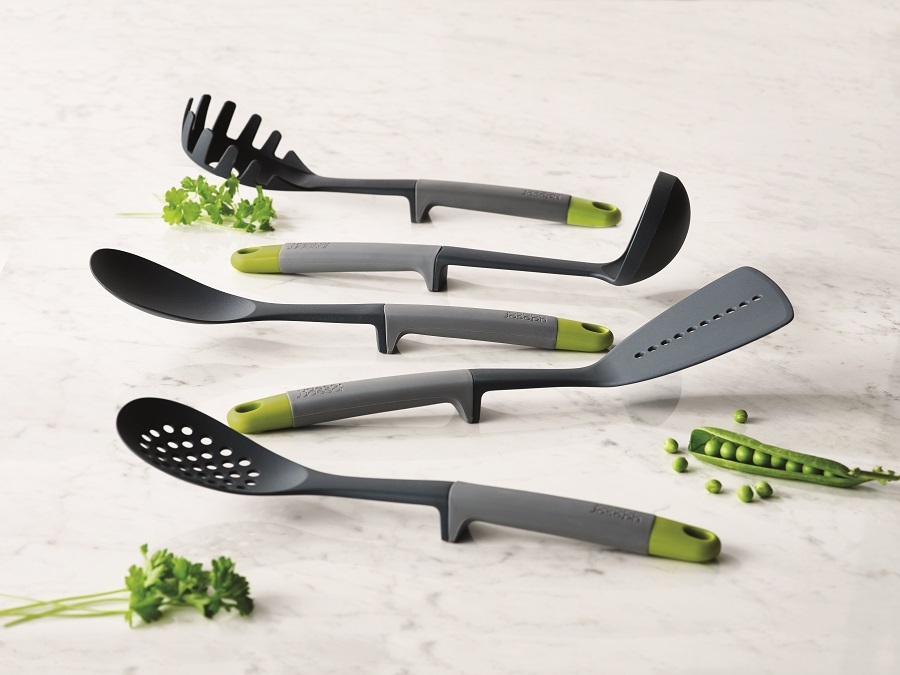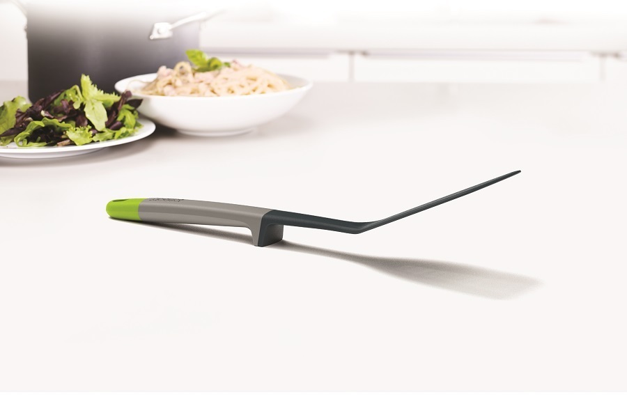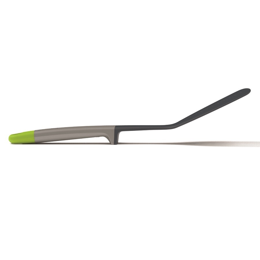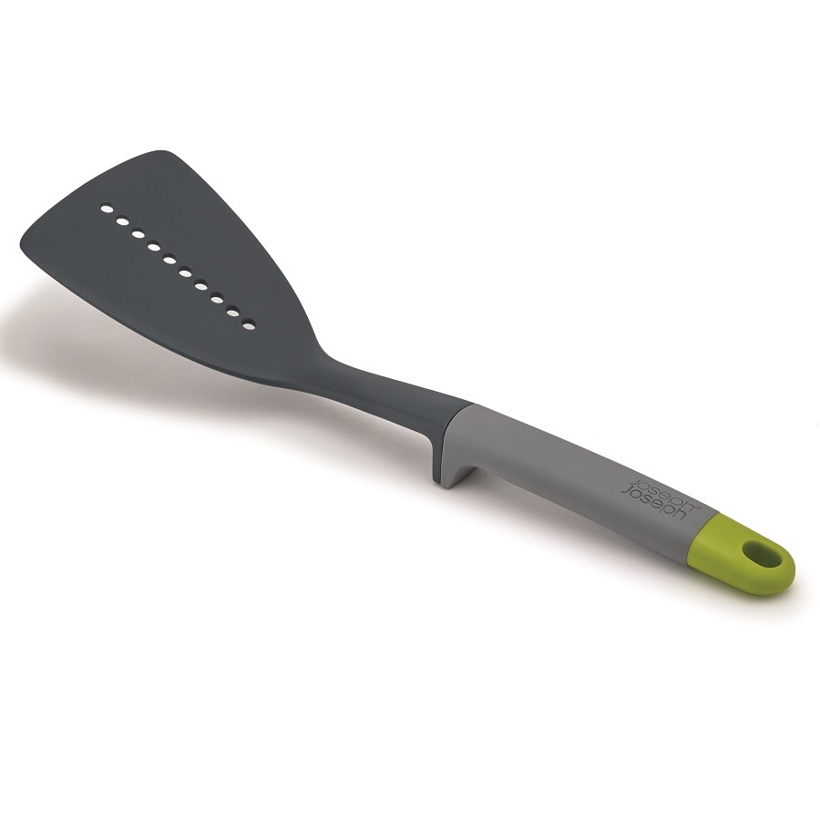 Лопатка для переворачивания продуктов во время готовки и для сервировки готовых блюд. Входит в серию кухонных приборов Elevate™, разработанную для поддержания максимального порядка во время приготовления пищи. Расположенные в ряд отверстия осушат продукты от лишнего жира и жидкости. Специальный утяжелитель в рукоятке постоянно удерживает наконечник навесу, благодаря чему испачканная часть инструмента никогда не касается рабочей поверхности. Подходит для совместного использования с противопригарной посудой.