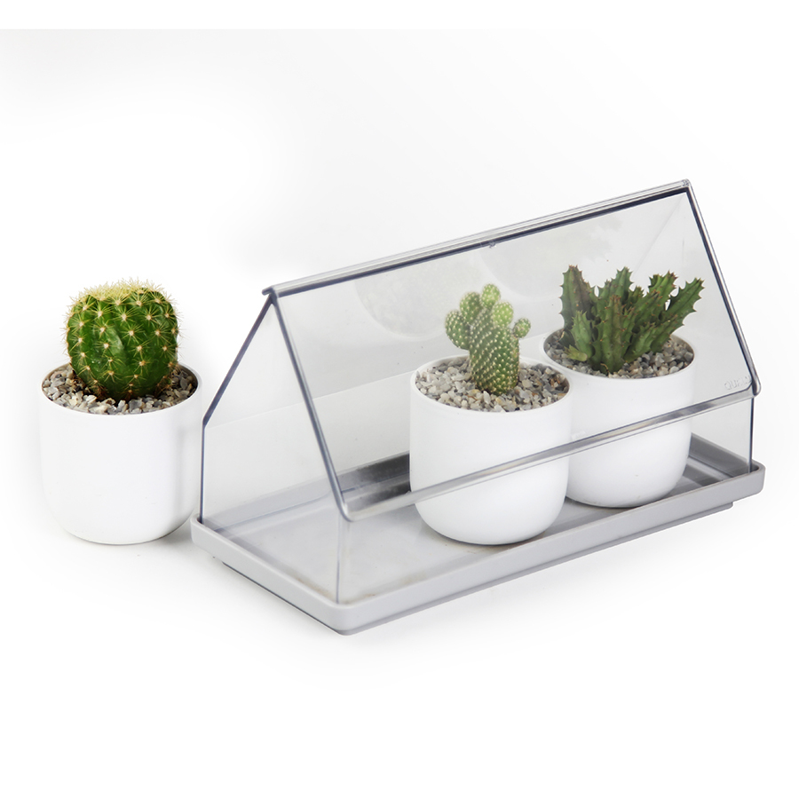 Лоток для выращивания растений Micro Green House станет оригинальным украшением рабочего стола или подоконника на кухне. Дизайнеры Qualy создали мини-оранжерею из прозрачного экологически безопасного пластика, которая отлично пропускает свет и защищает от вредителей комнатные цветы, суккуленты или травы. Верхняя часть лотка выполнена в виде крыши, которая легко открывается для удобного полива растений. Горшки не входят в комплект поставки.