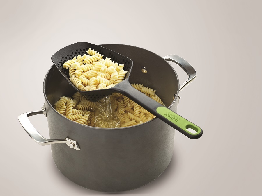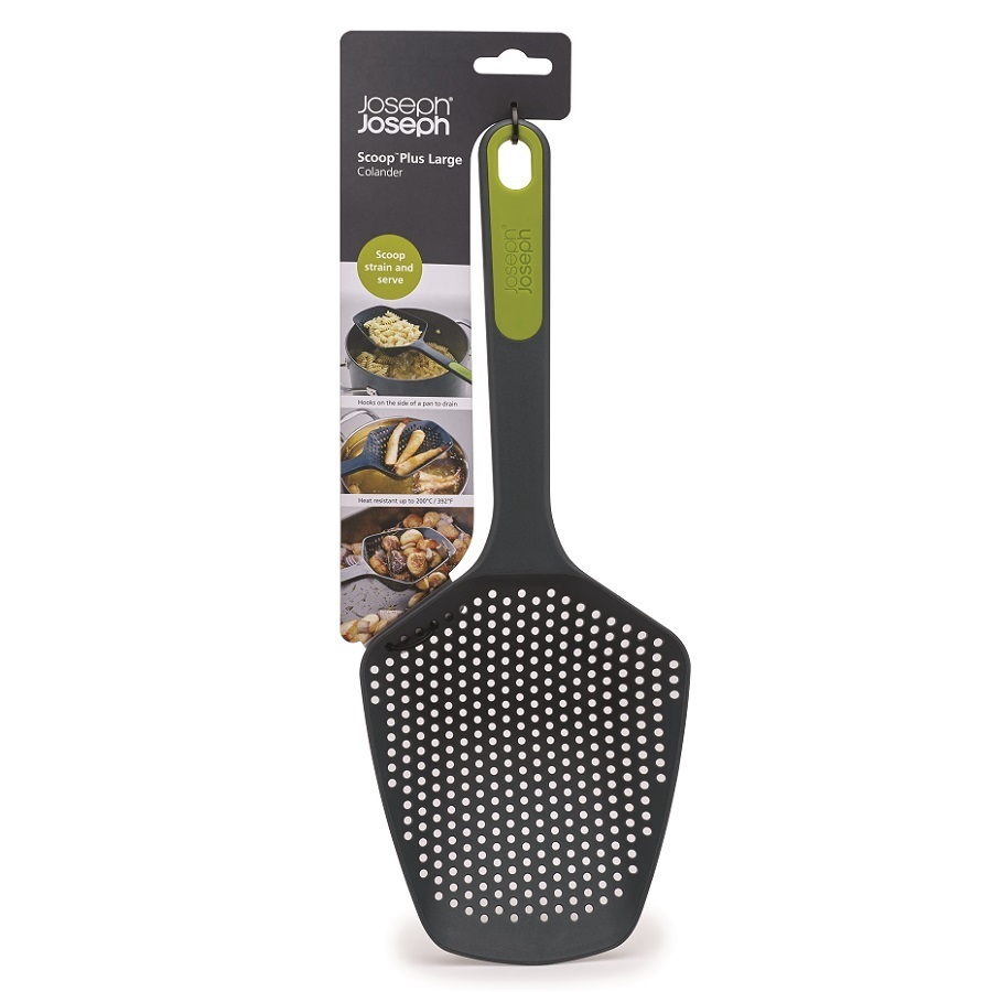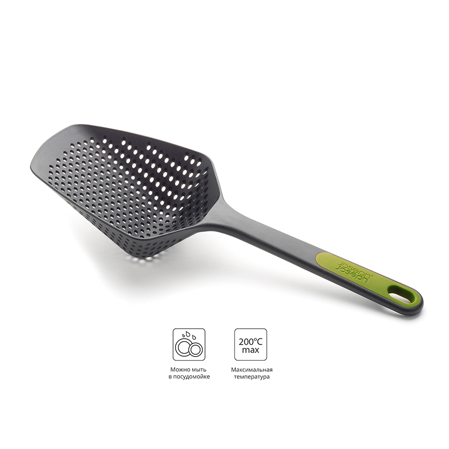 Практичный кухонный инструмент, который позволяет извлекать, процеживать и сразу же сервировать любые продукты. Конструкция ложки позволяет зацепить ее на кастрюле, оставив на время, необходимое для стекания воды. Выдерживает температуру до 200°C. Можно мыть в посудомоечной машине.