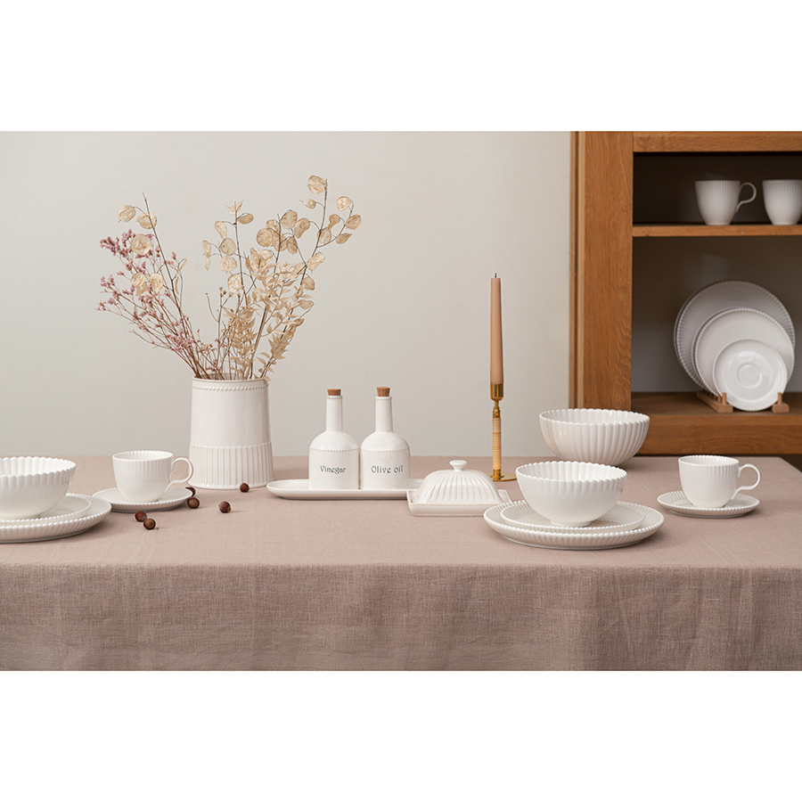 Масленка белого цвета из коллекции Kitchen Spirit – оригинальная и практичная посуда из фарфора, которая непременно понравится поклонникам стилей рустик и кантри. Фактурный декор в сочетании с глянцевой глазурью станут изюминкой любой сервировки и помогут создать теплую атмосферу за столом. Емкость из экологичного и практичного материала отличается прочностью, не меняет вкус и запах продуктов, легко очищается от загрязнений в теплой мыльной воде. Все предметы из коллекции Kitchen Spirit отлично комбинируются между собой.