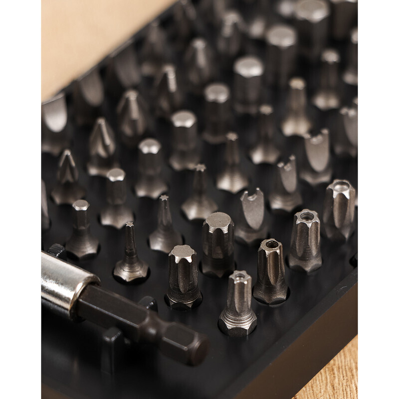 Набор укомплектован магнитным битодержателем, который обеспечивает фиксацию и надежное крепление насадок.