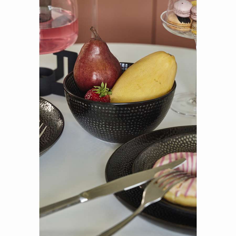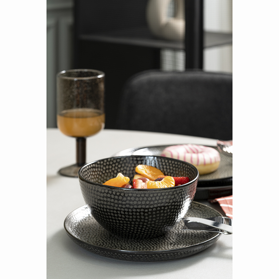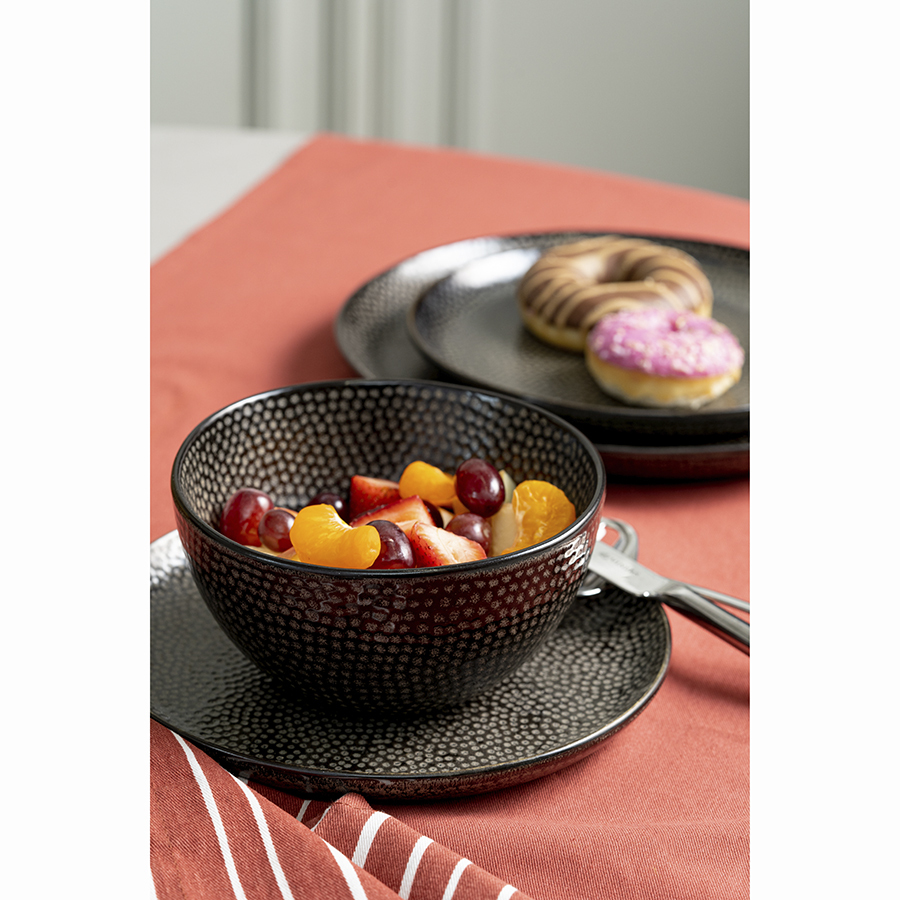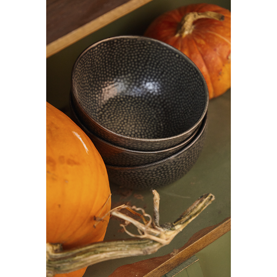 Чаши из коллекции Dots помогут сделать акцент на модной сервировке. Полуматовая глазурь эффектно подчеркивает необычный узор, покрывающий всю поверхность посуды, что придает ей особый шарм. Помимо декоративных свойств такое покрытие обеспечивает дополнительную защиту от внешних воздействий. Изделия из каменной керамики обладают прекрасными эксплуатационными характеристиками. Материал является экологичным, ударопрочным и устойчивым к температурным перепадам. Благодаря этому емкости можно ставить в морозильную камеру и использовать для разогрева еды в микроволновой печи.