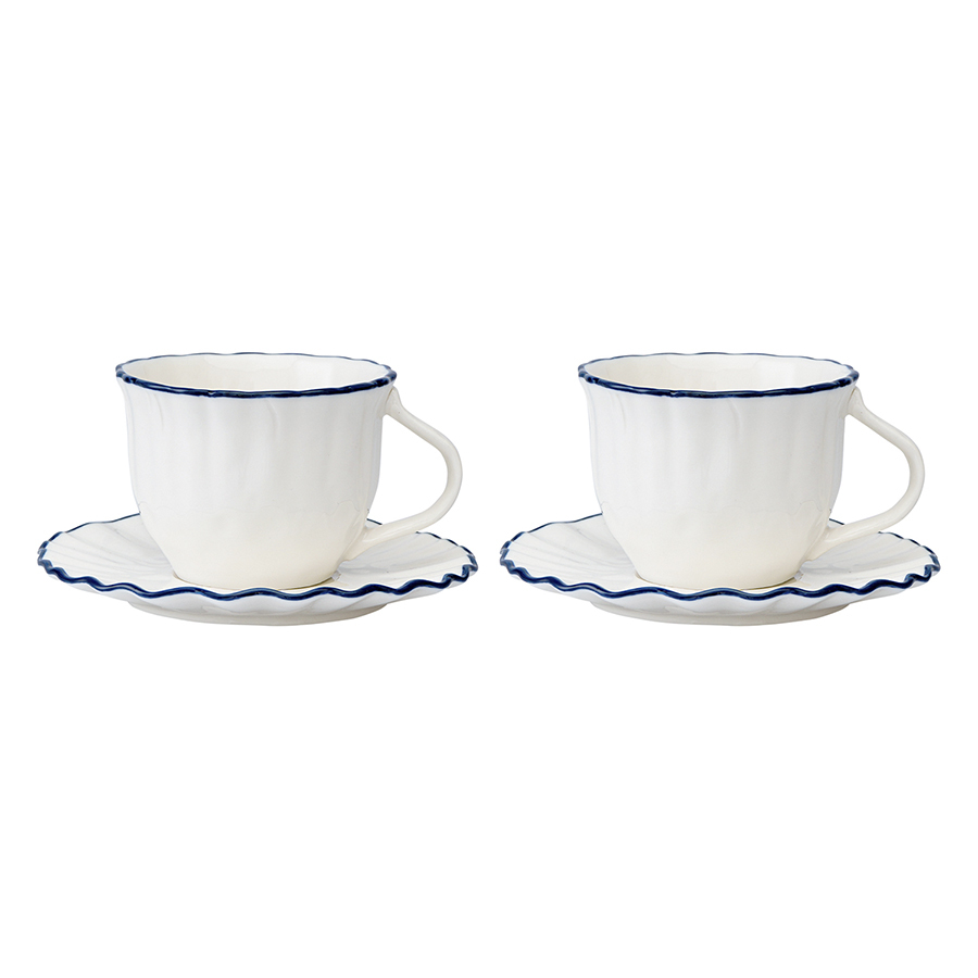 Чашки из коллекции Santorini от бренда Liberty Jones воплощают в себе элегантность посуды из фарфора, привлекая необычным дизайном с контрастными акцентами.